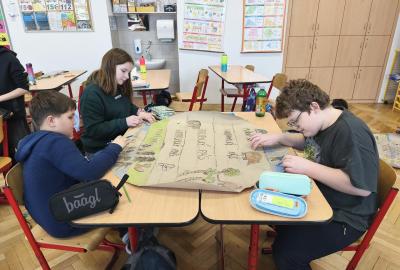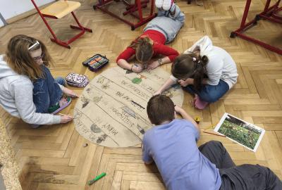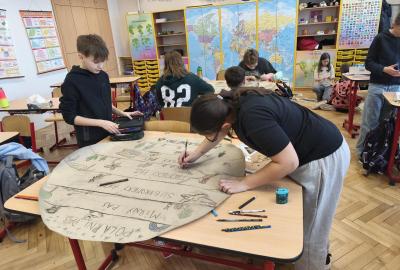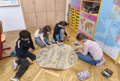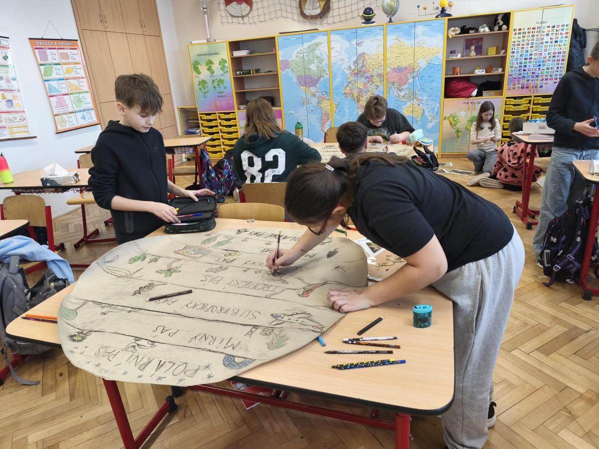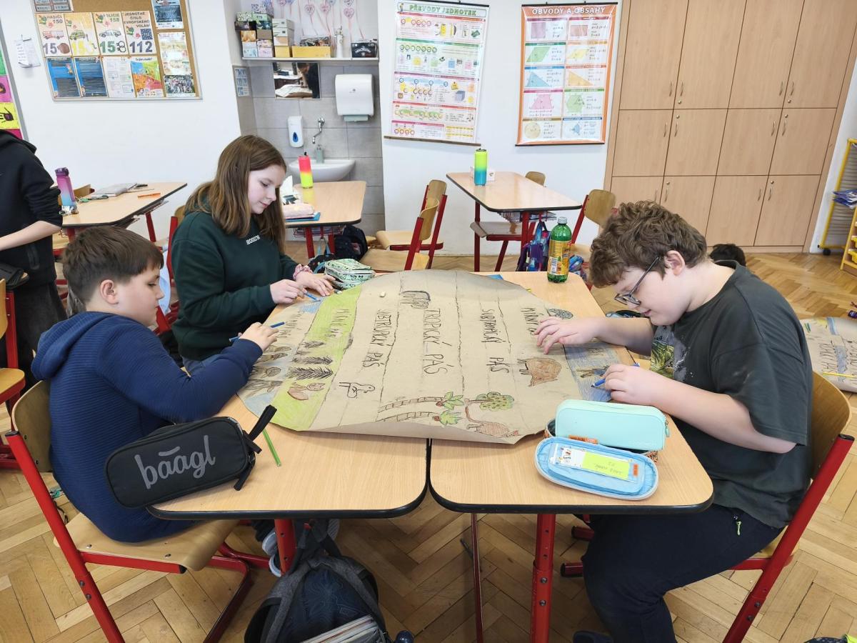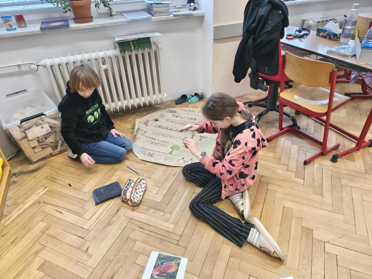 V přírodovědě jsme probírali téma Podnebné pásy. Zaujalo nás natolik, že jsme se rozhodli vyrobit si vlastní učební pomůcku. Pracovali jsme ve skupinách. Opakovací test díky tomu dopadl výborně. Svými výtvory jsme ozdobili naši třídu i nástěnku na chodbě...