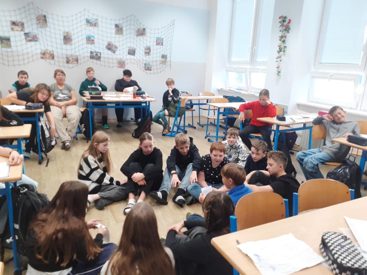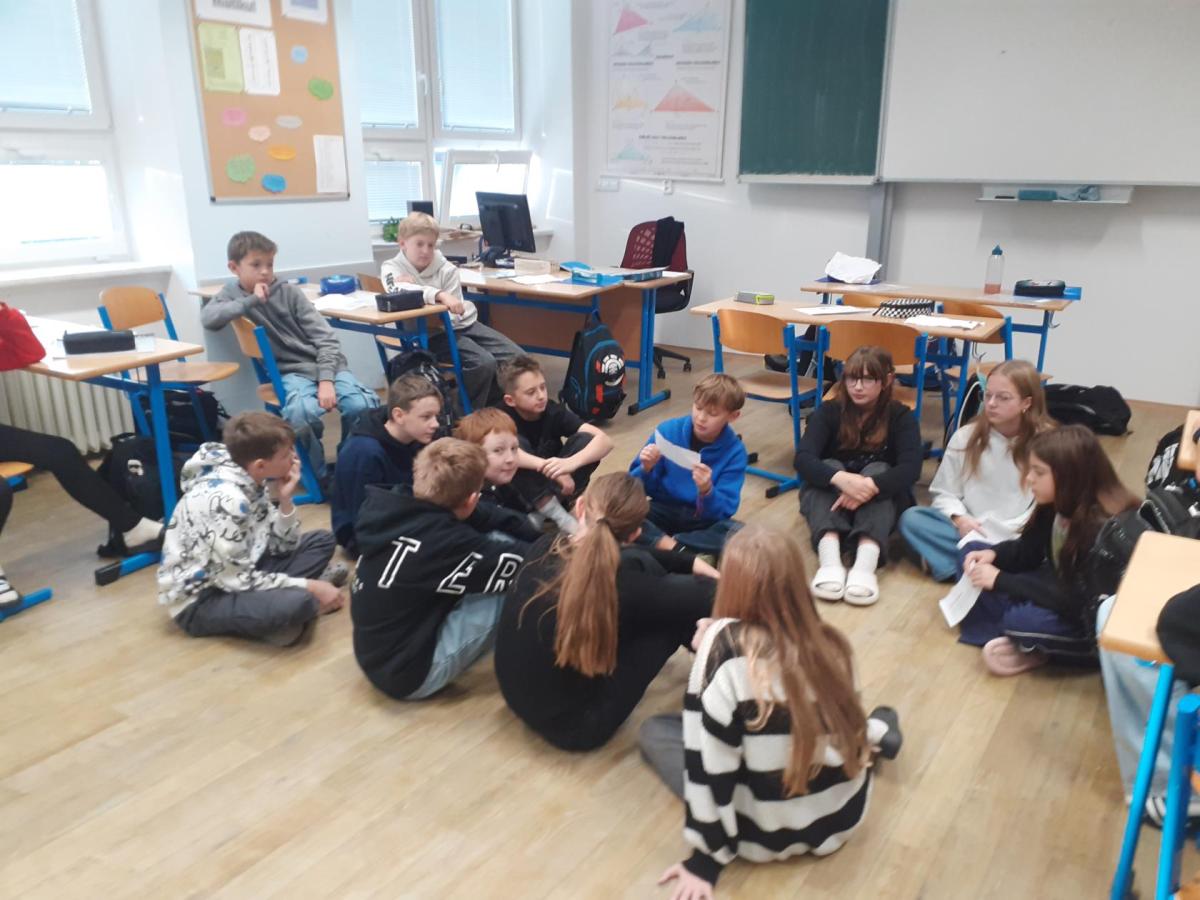 Tématem dnešního povídání a různých aktivit byl kolektiv, nejen třídní. Společně jsme diskutovali a pojmenovávali naše role v různých kolektivech, kterých jsme sami součástí. Zamýšleli jsme se nad způsoby správné komunikace a na tom, jak je důležité být všímavý k potřebám a pocitům druhého. Hráli jsme scénky a vžívali se do role nováčka, který chce vstoupit a zapojit se do nějakého kolektivu. Rozebírali jsme, jak můžeme my sami ovlivnit tento proces a společně jsme vyvodili druhé pravidlo naší KiVa úmluvy: Z naší třídy vytvoříme kolektiv, kde se všichni budou cítit dobře.