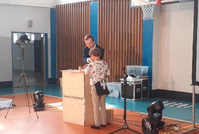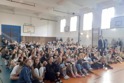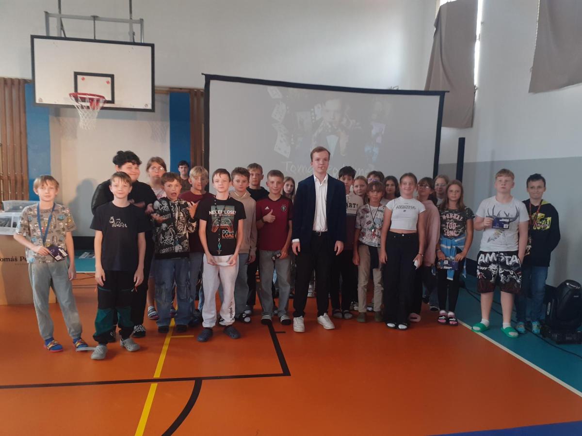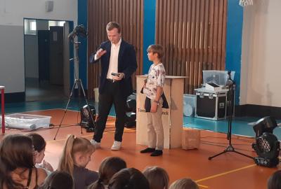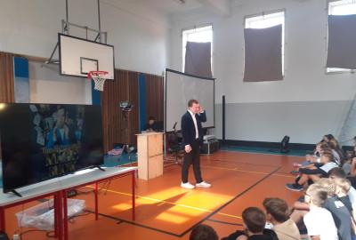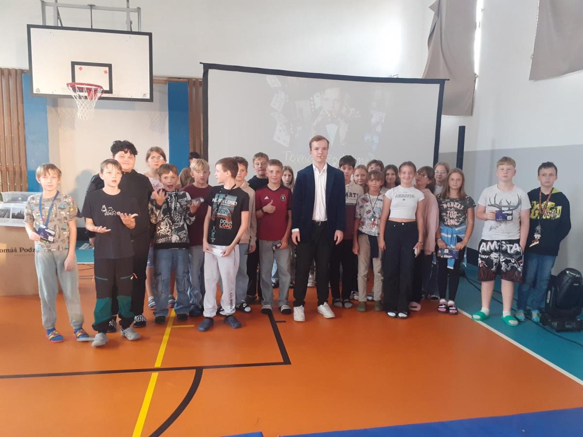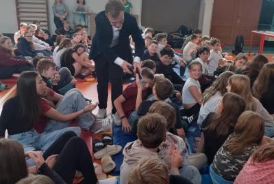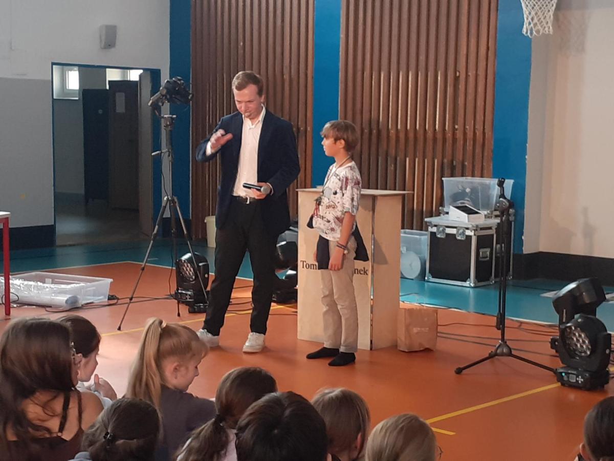 ...a on opravdu přišel, Tomáš Podzimek - kouzelník dorazil do naší školy a my jsme tak mohli na vlastní oči vidět celou řadu kouzelnických triků, povídání bylo proloženo poutavým videem z cestování a my jsme se dozvěděli mnoho zajímavostí z různých koutů světa.