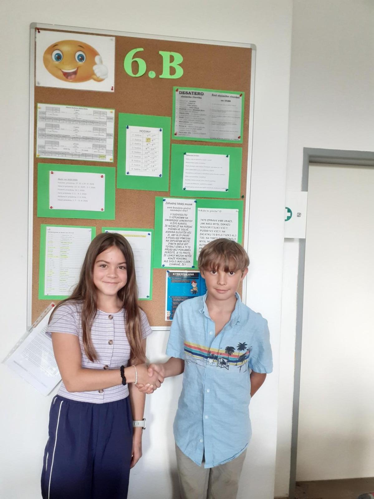 Naši třídu 6.B bude v letošním školním roce zastupovat v žákovské radě Julián Dordain. Spolupracovat bude se zástupci všech tříd na škole a na třídnických hodinách nás vždy seznámí s obsahem jednání ŽR, v případě jeho nepřítomnosti ho zastoupí Rozálie Sochorová. ŽR se schází 1x měsíčně v úterý.