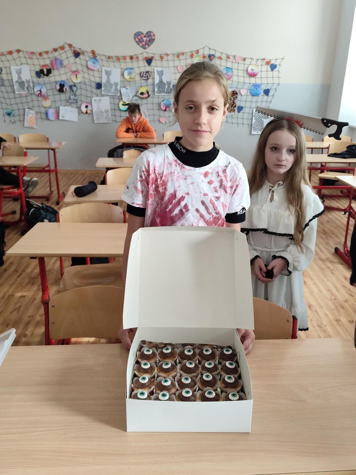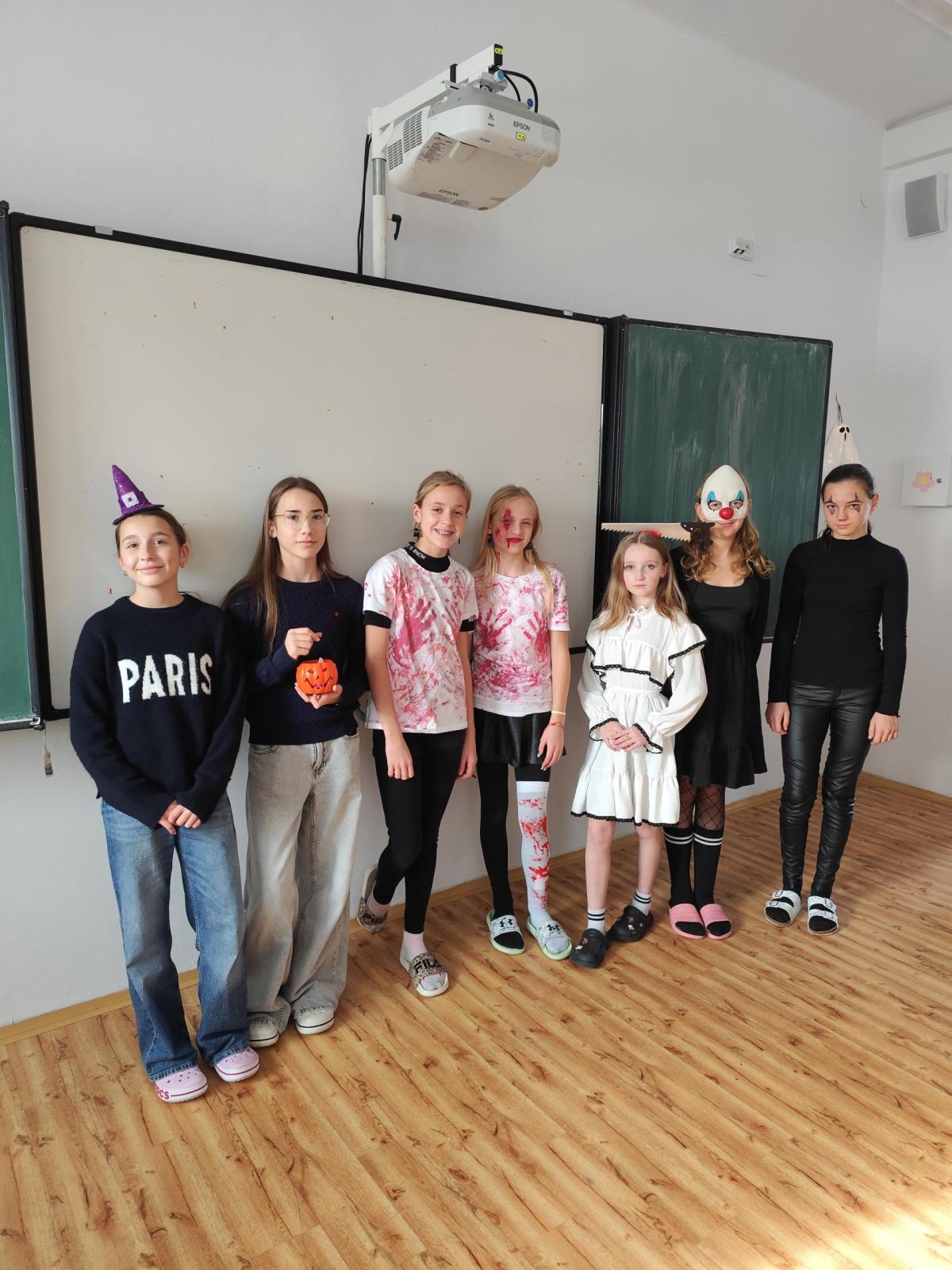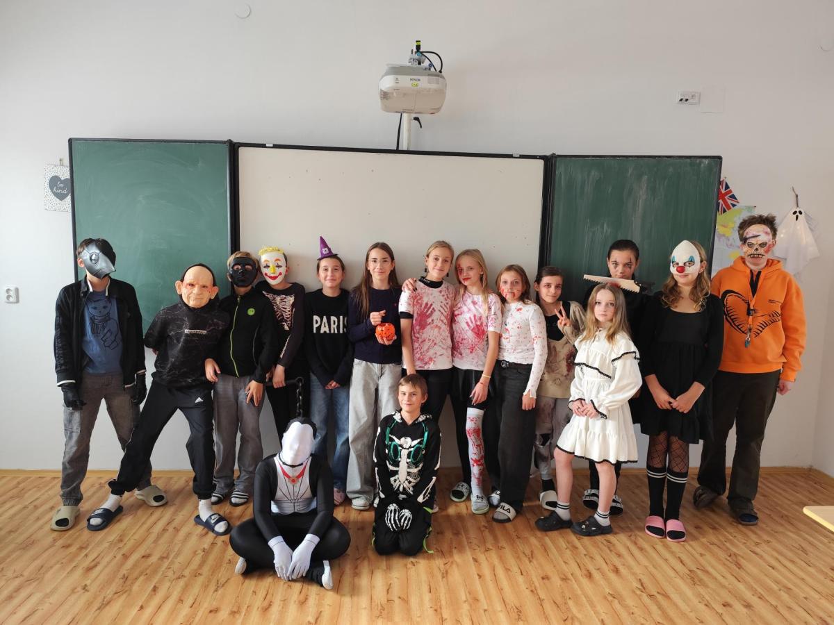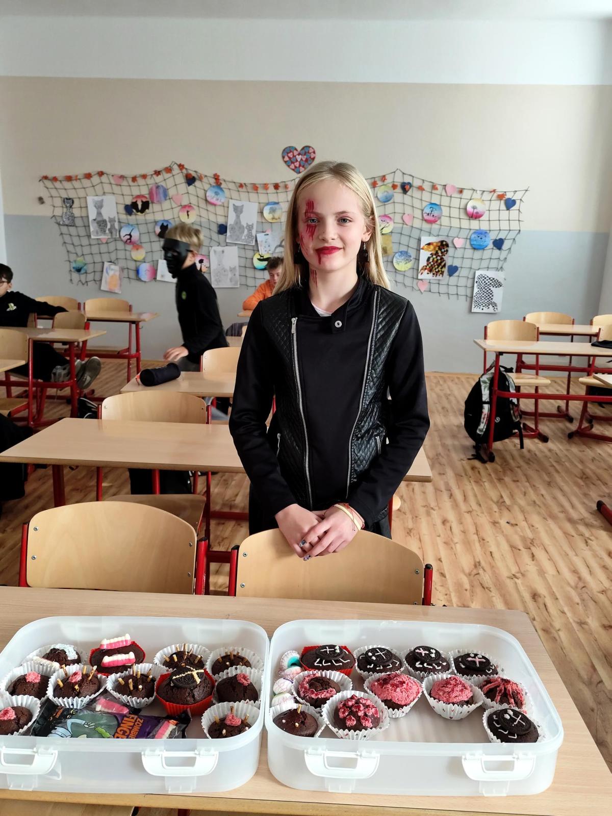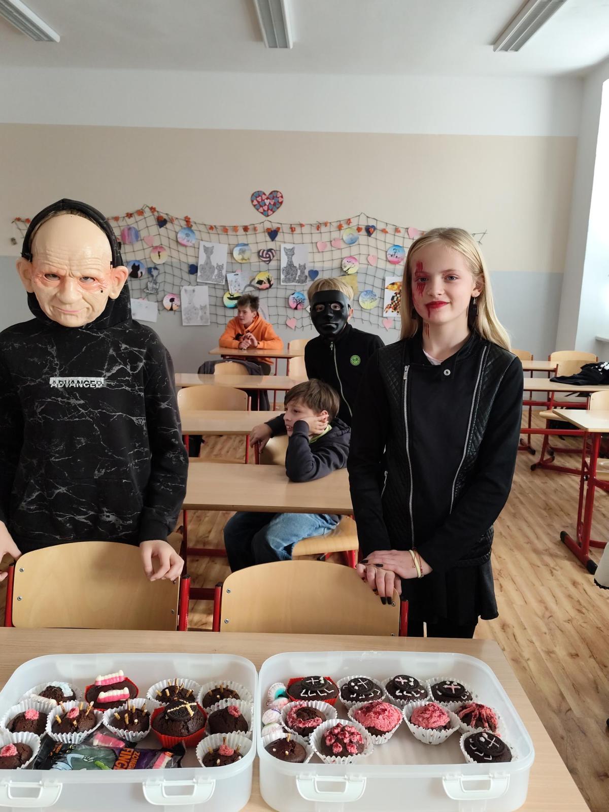 Na konci října proběhl na naší škole tematický den spojený s obdobím tajemna a mystična. V Čechách máme svátek Všech svatých, po kterém následují Dušičky. V anglosaskch zemích se v tuto dobu slaví Halloween, který je díky strašidelnosti svátkem, který láká děti po celém světě k oslavám. Kromě toho, že se žáci naší třídy převlékli do zajímavých masek, ochutnali také výborné muffiny. Strašidelnou atmosféru nám ve třídě zpříjemnily Zuzka Koubová a Gabča Háčková, které spolu se svými rodiči napekli pro naši třídu samé dobroty.