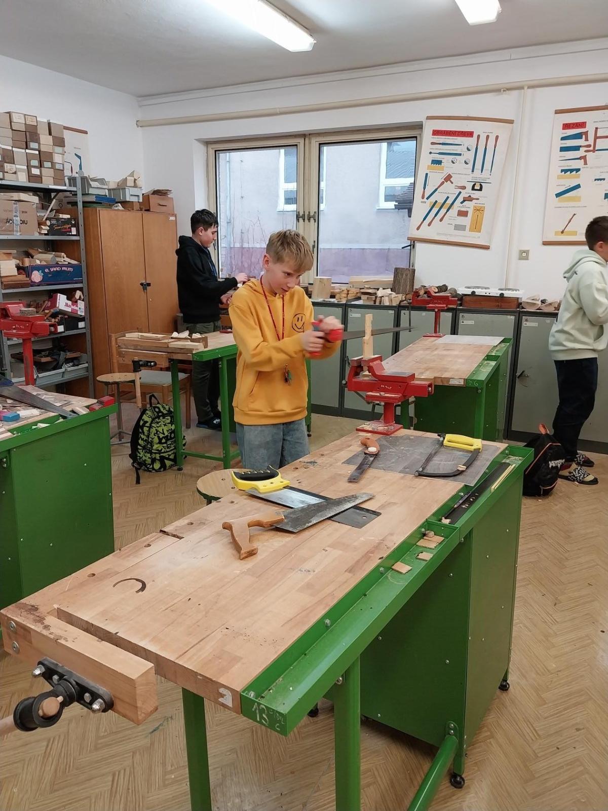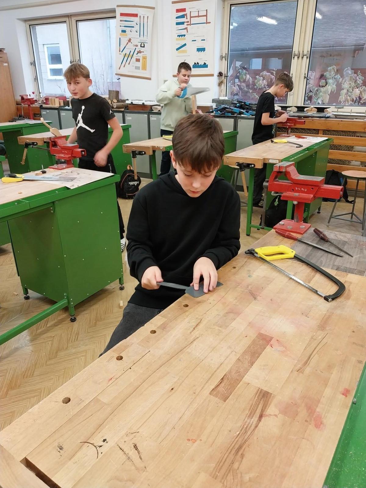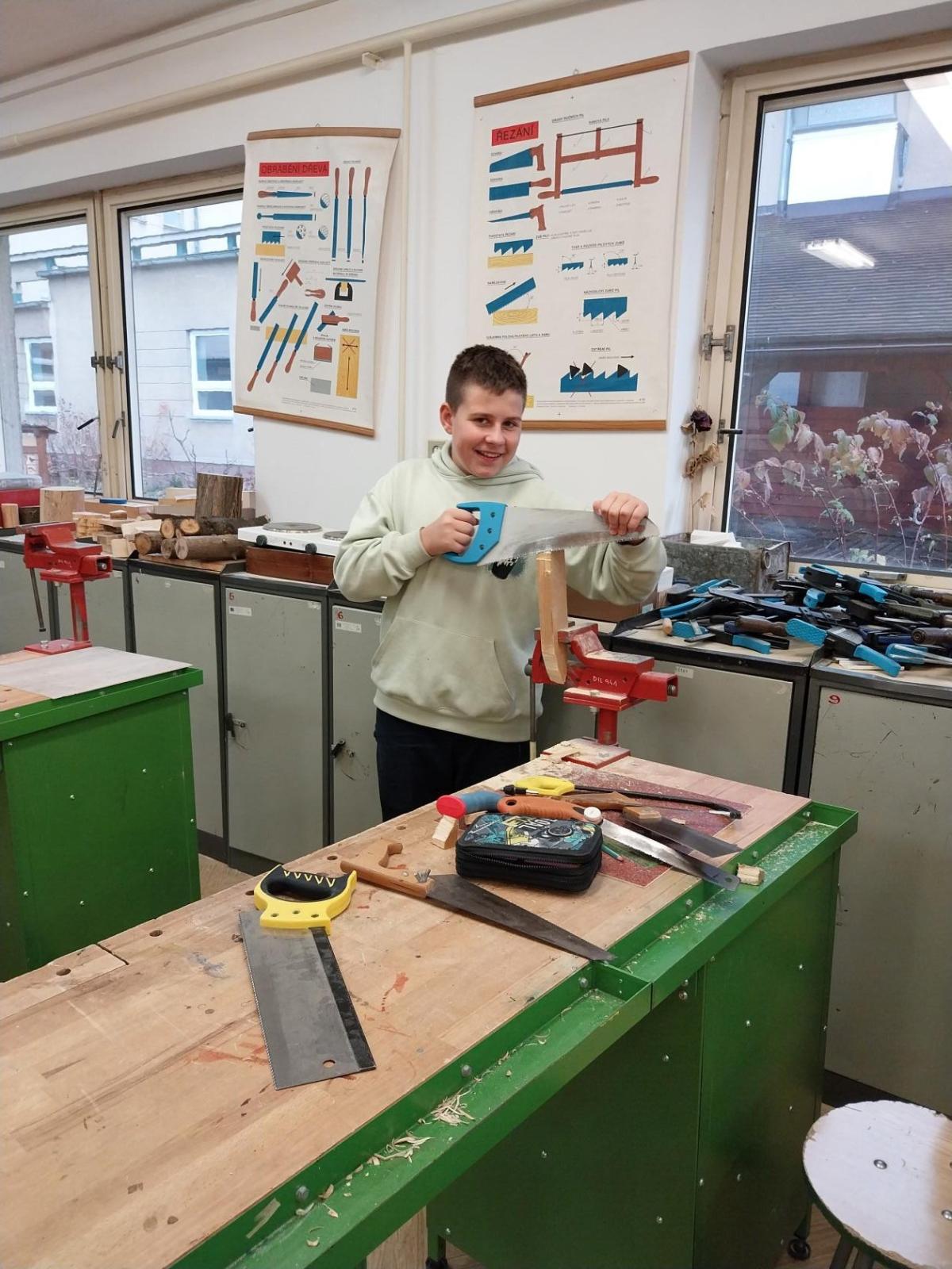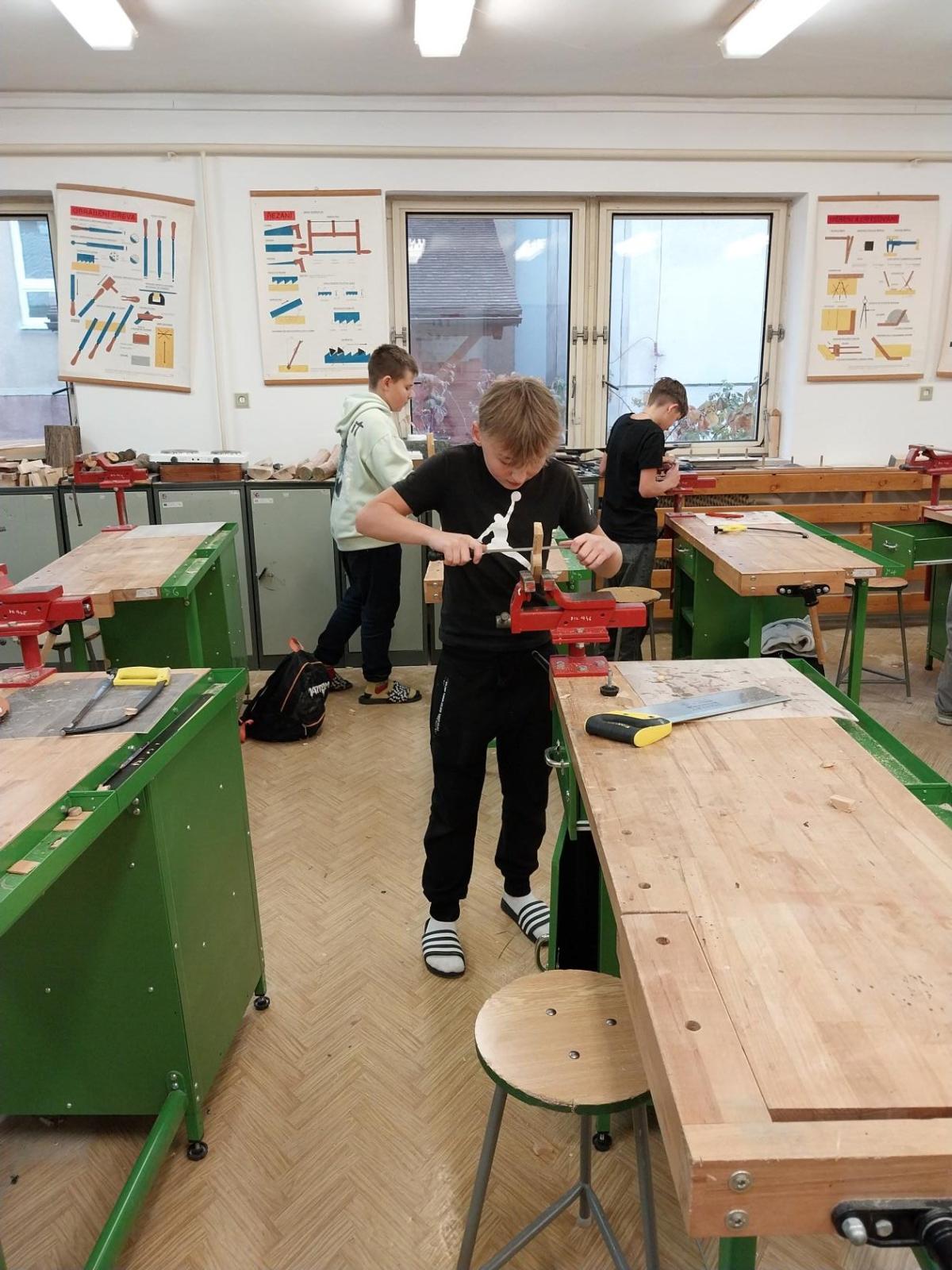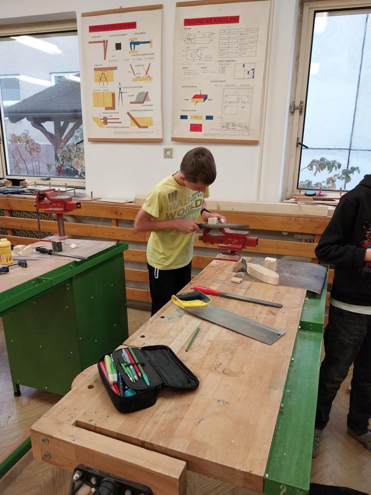Zatímco se děvčata otáčela v kuchyňce, kluci řezali a pilovali v dílně.