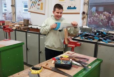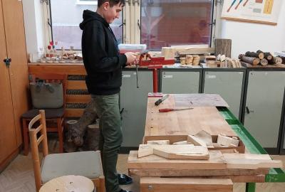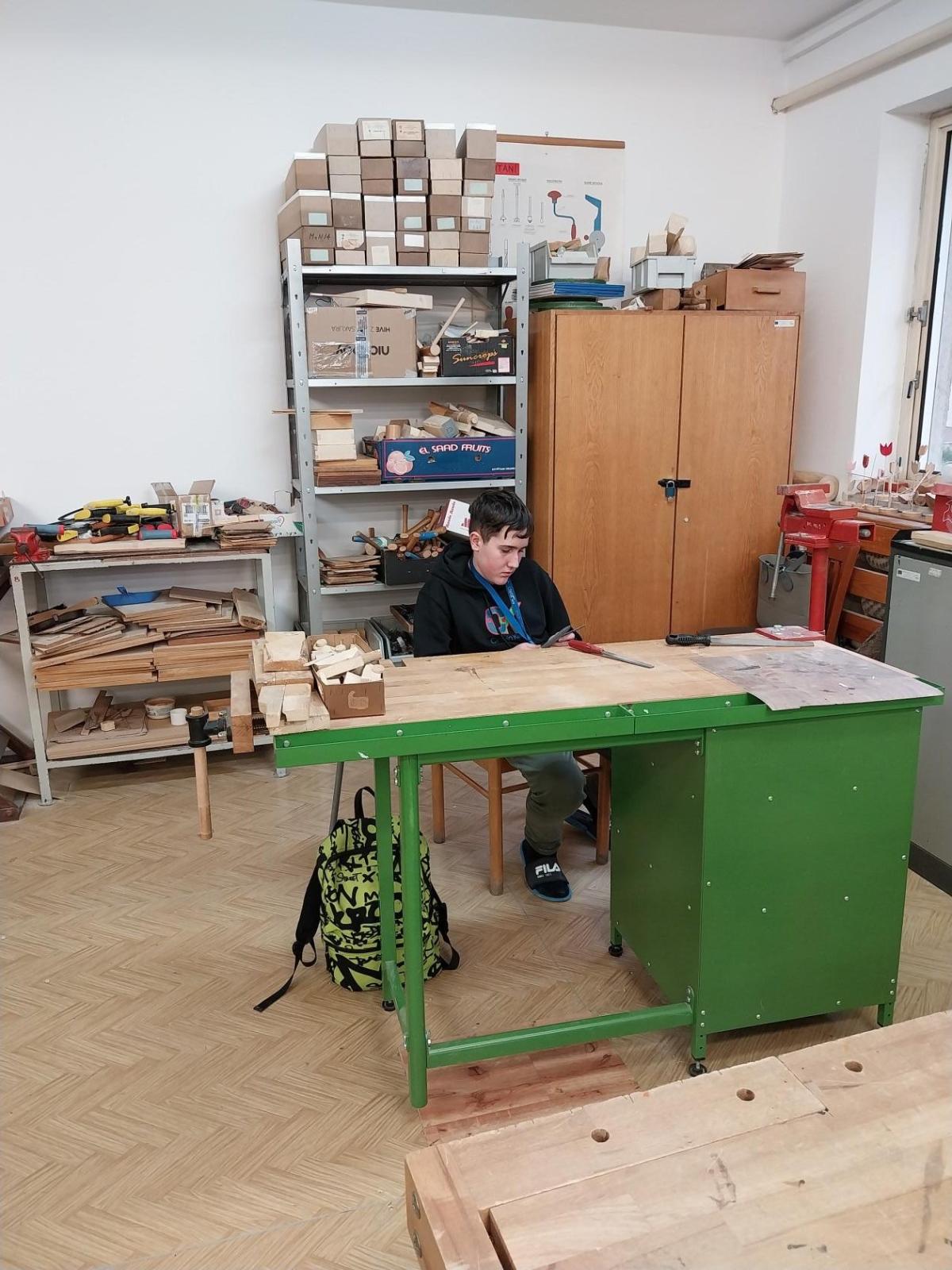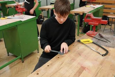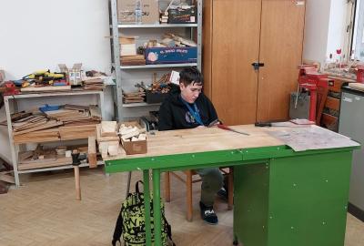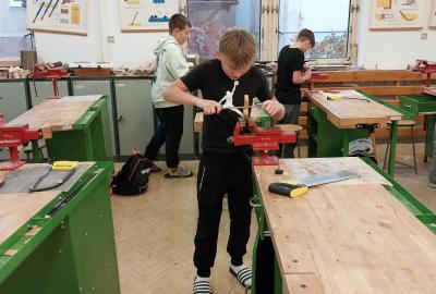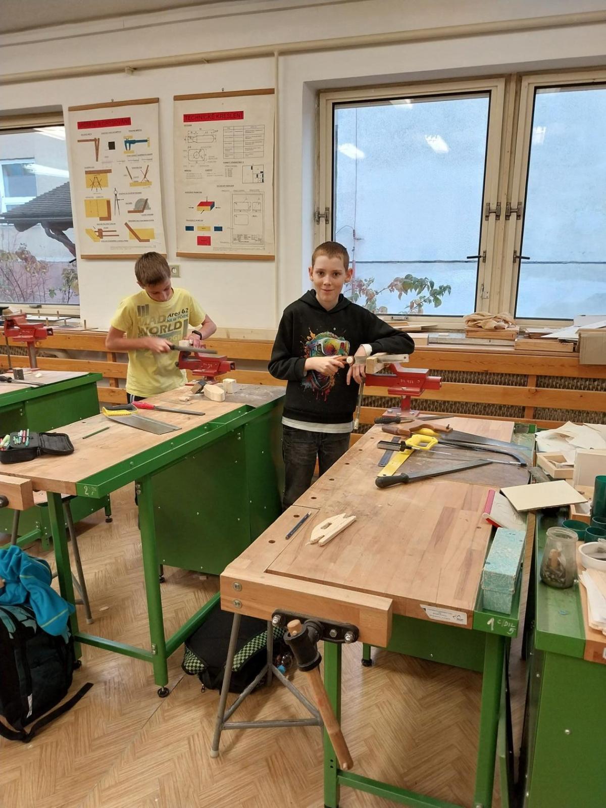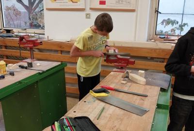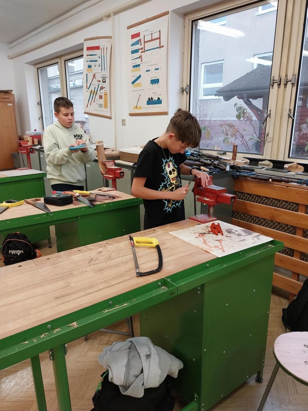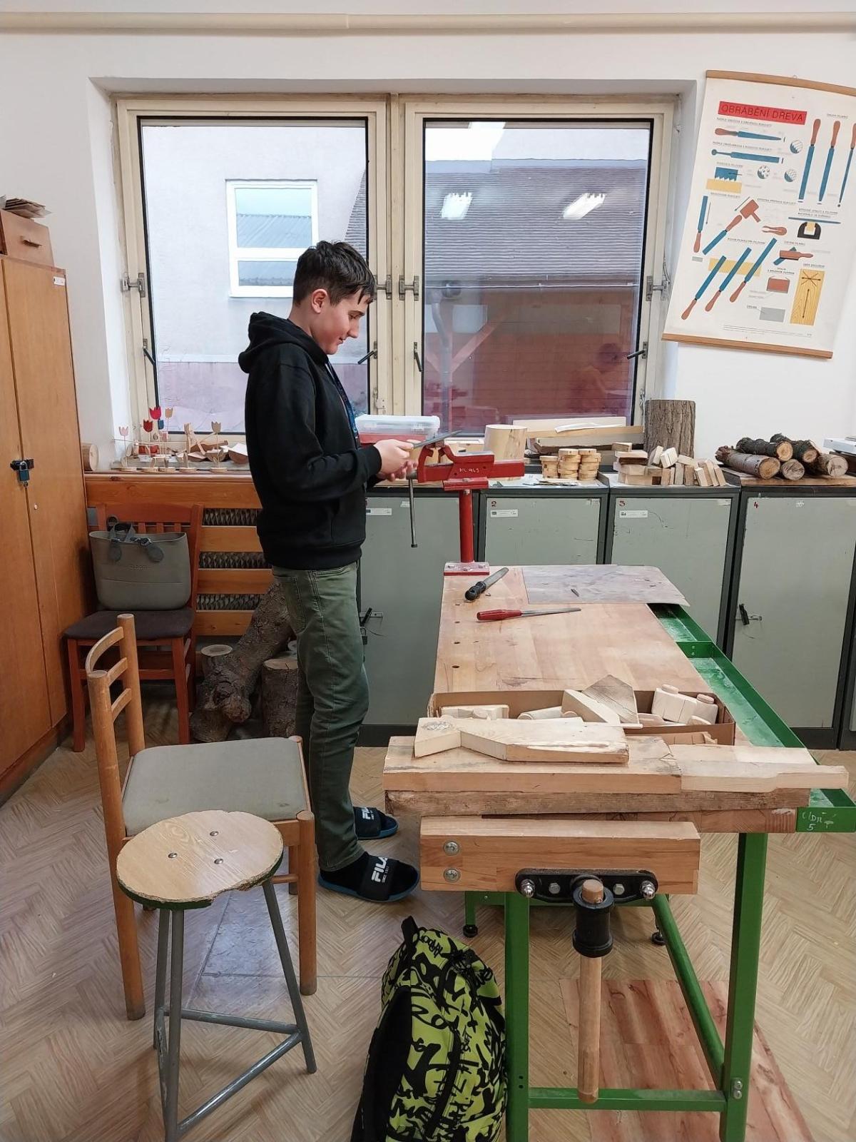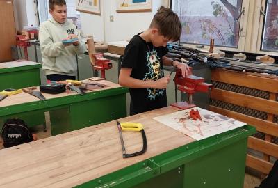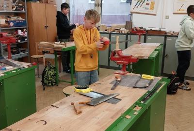 Zatímco se děvčata otáčela v kuchyňce, kluci řezali a pilovali v dílně.