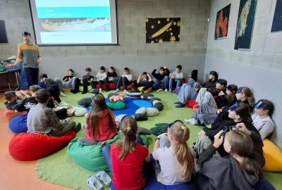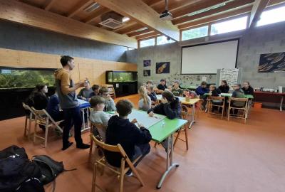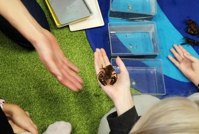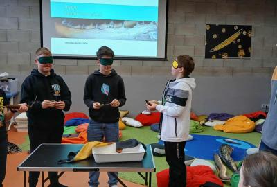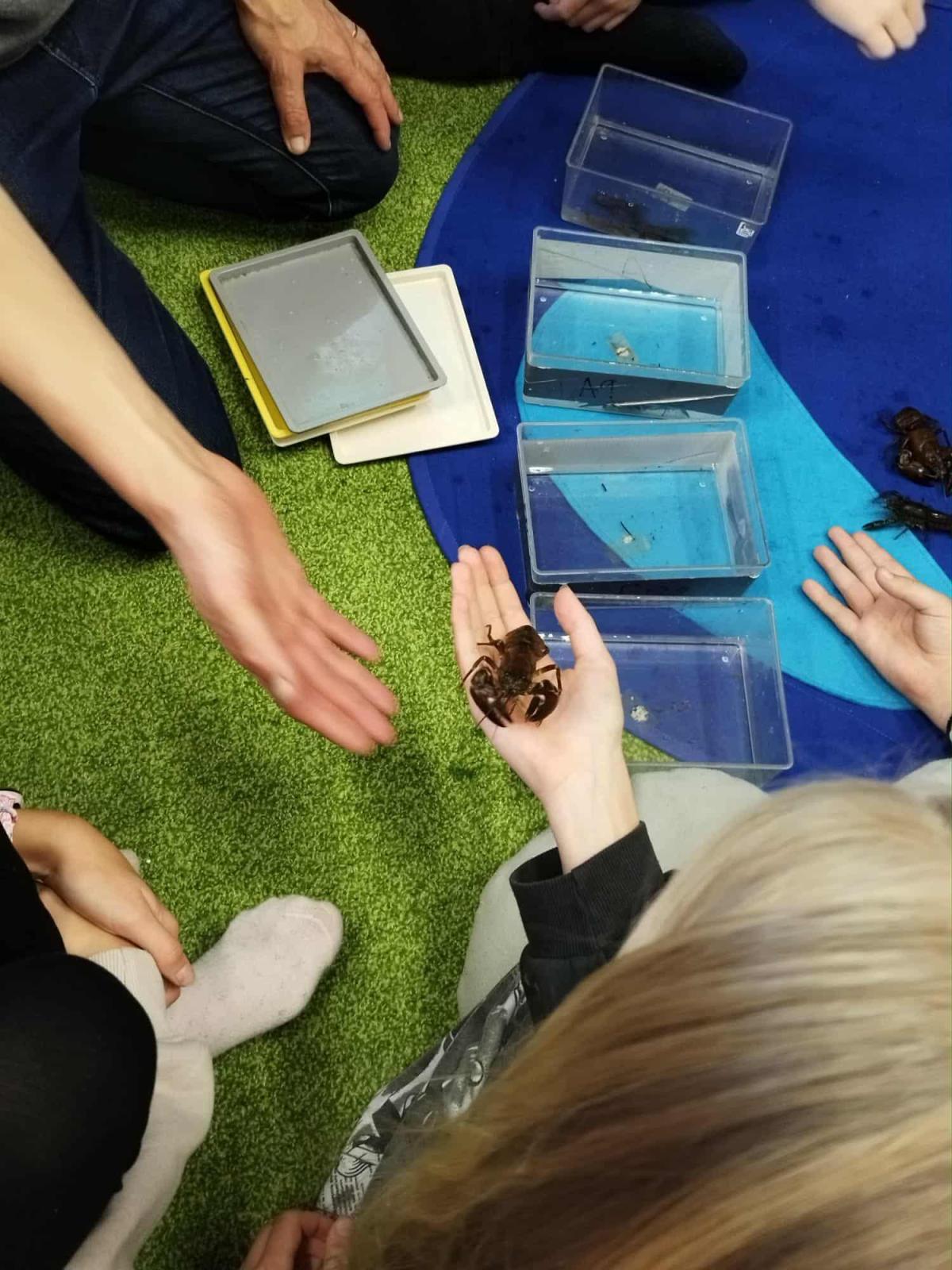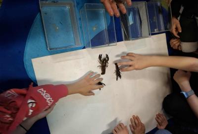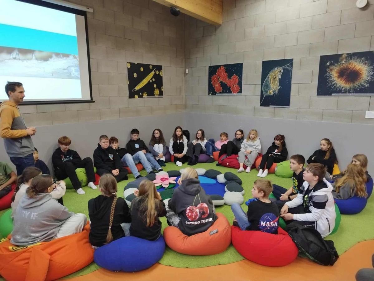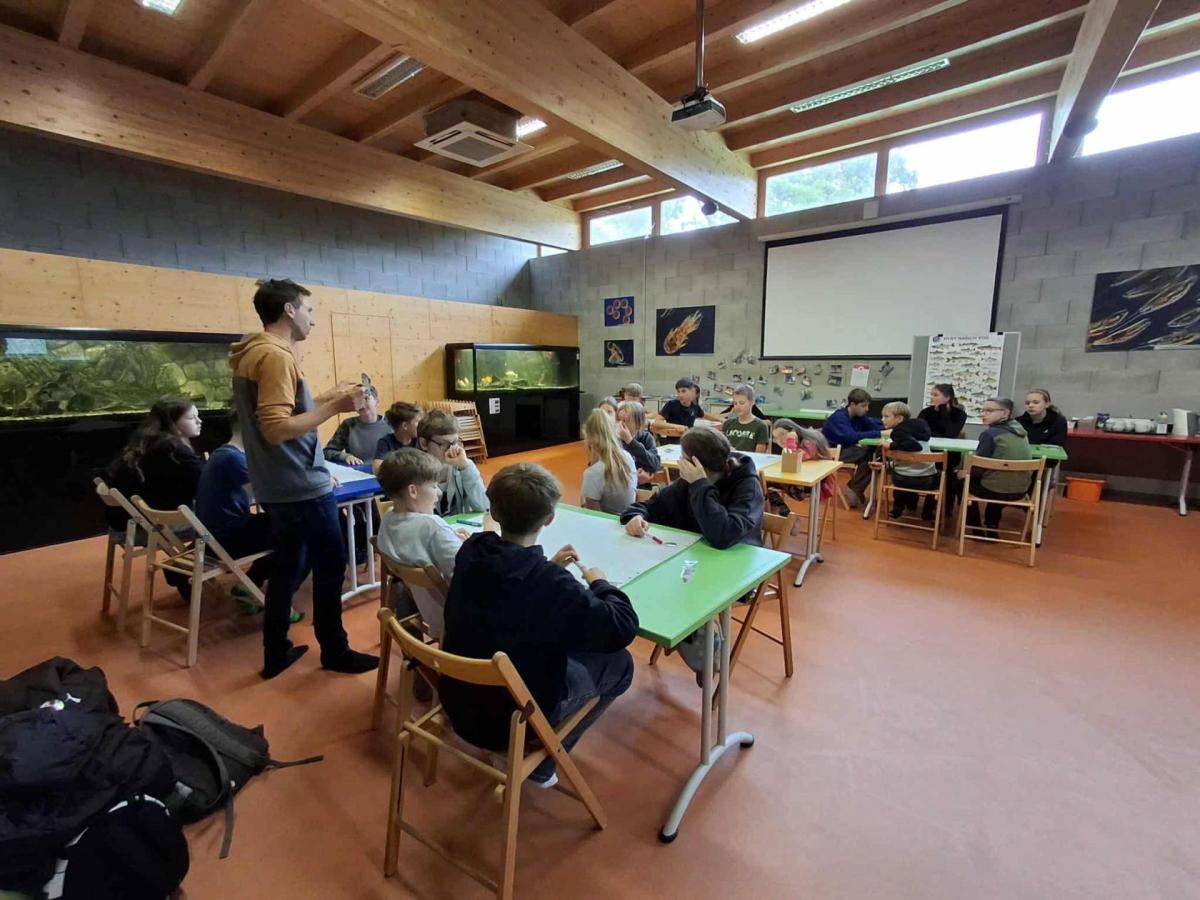 Čekání na praktickou část si zkrátili na interaktivním hřišti MEVPISu, kde si mohli vyzkoušet různé ekologické a přírodovědné hry. Poté už na nás čekaly ryby, raci a především úžasný pan lektor, který měl připravený program plný zajímavostí.