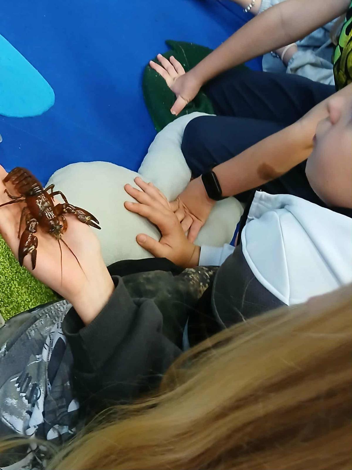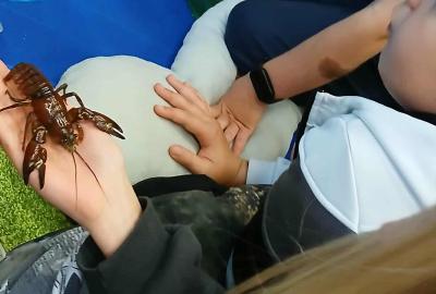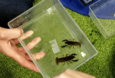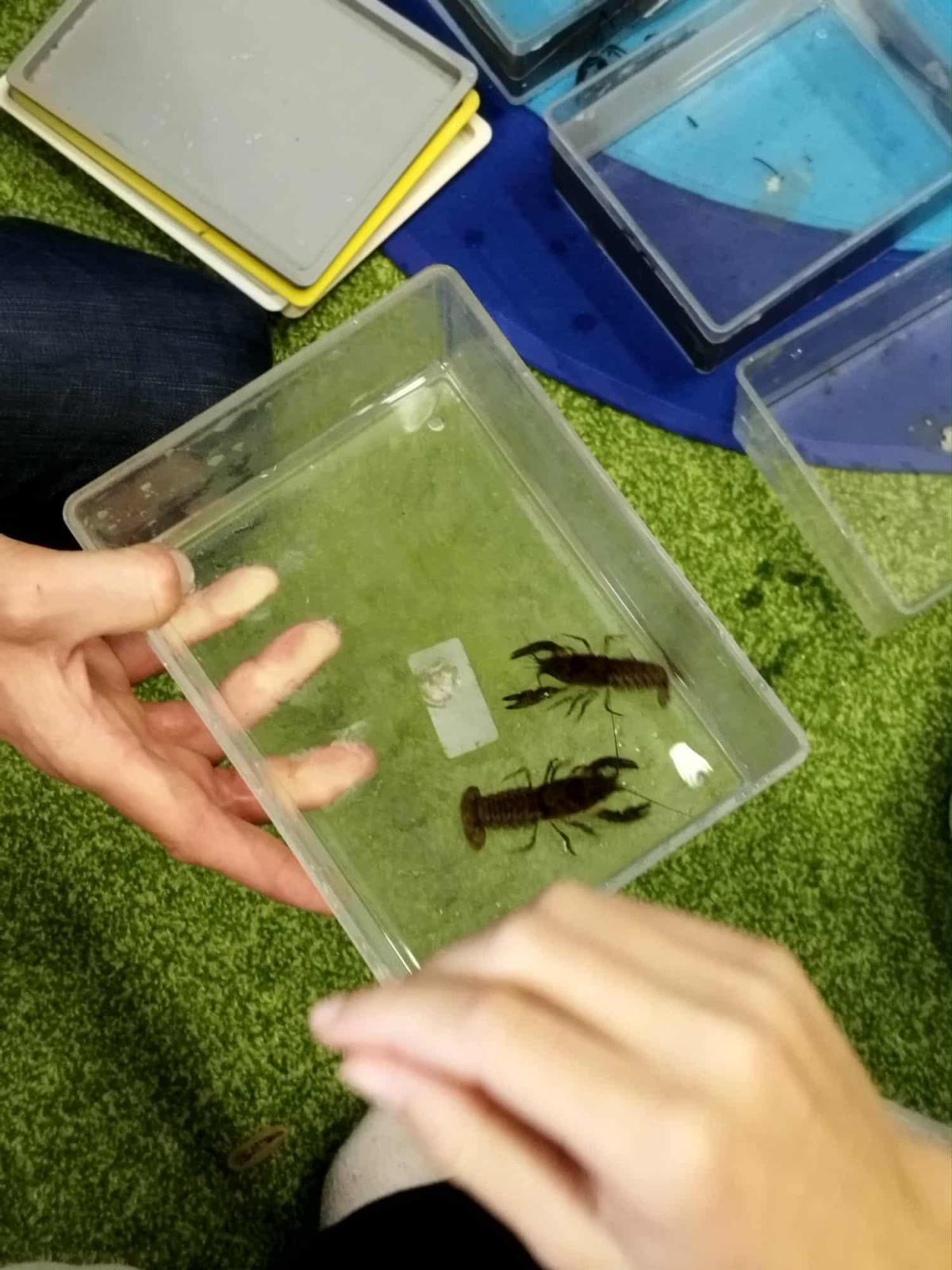 Následovalo seznámení s raky – zblízka a doslova „na dotek“. Ti odvážnější si mohli raka i pochovat! Na závěr si dobrovolníci vyzkoušeli lov „živých ryb“ pomocí vrhačky, což byla pro mnohé třešnička na dortu celé exkurze.