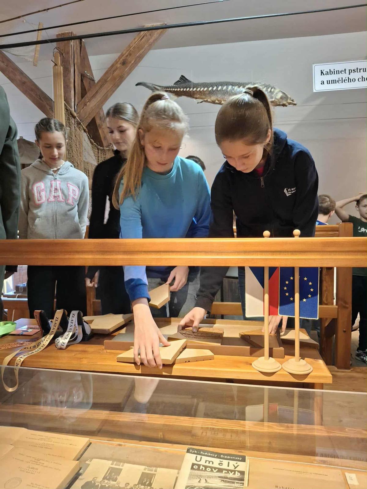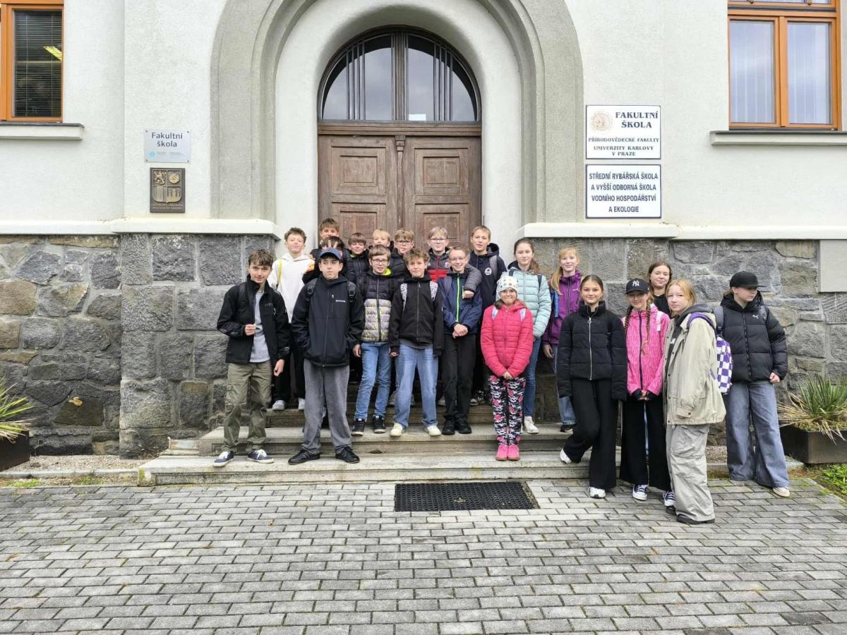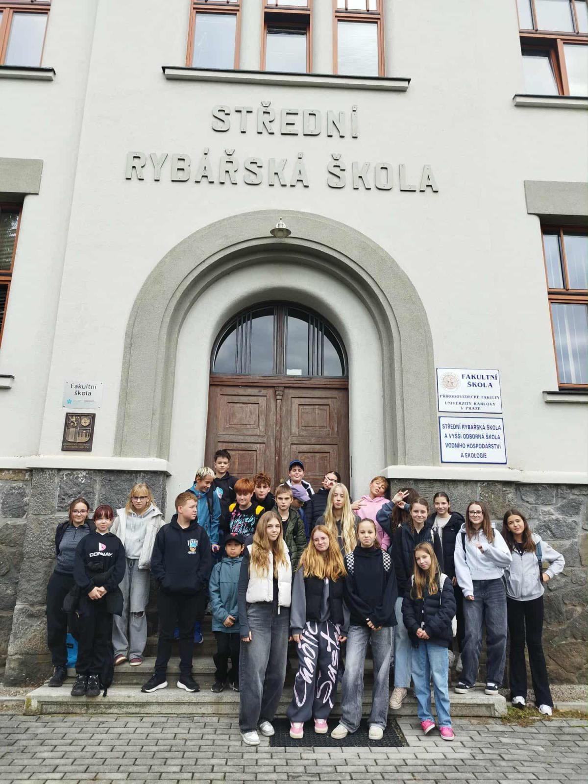 Ve čtvrtek 16. října 2025 se třídy 7.B, 7.C a 7.M vydaly na exkurzi do Střední rybářské školy a MEVPISu ve Vodňanech. Hned na úvod si žáci doslova tváří v tvář prohlédli živé ryby – jak v akváriích, tak i ve venkovním jezírku a navštívili expozici muzea rybářství.