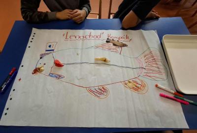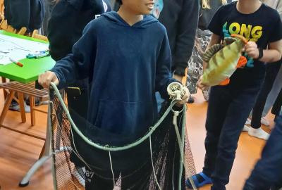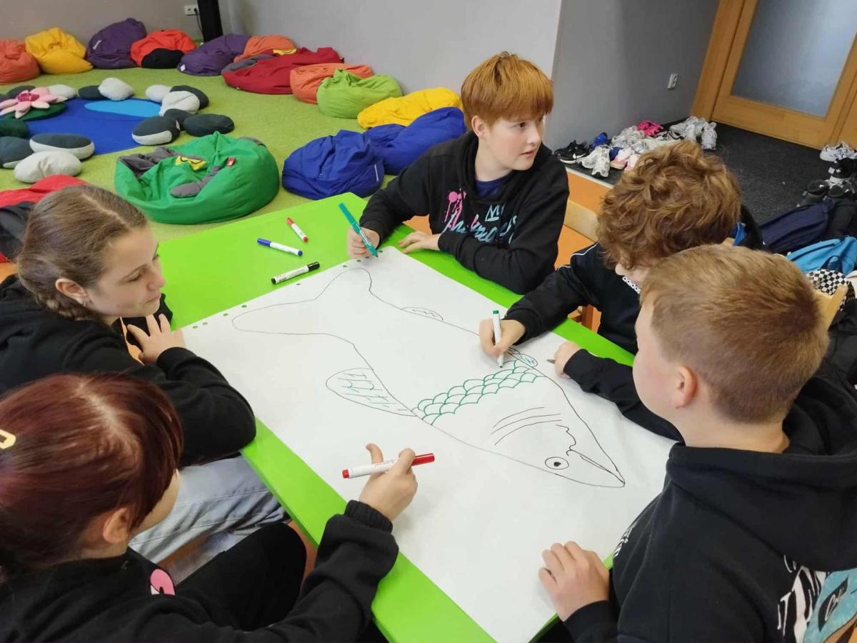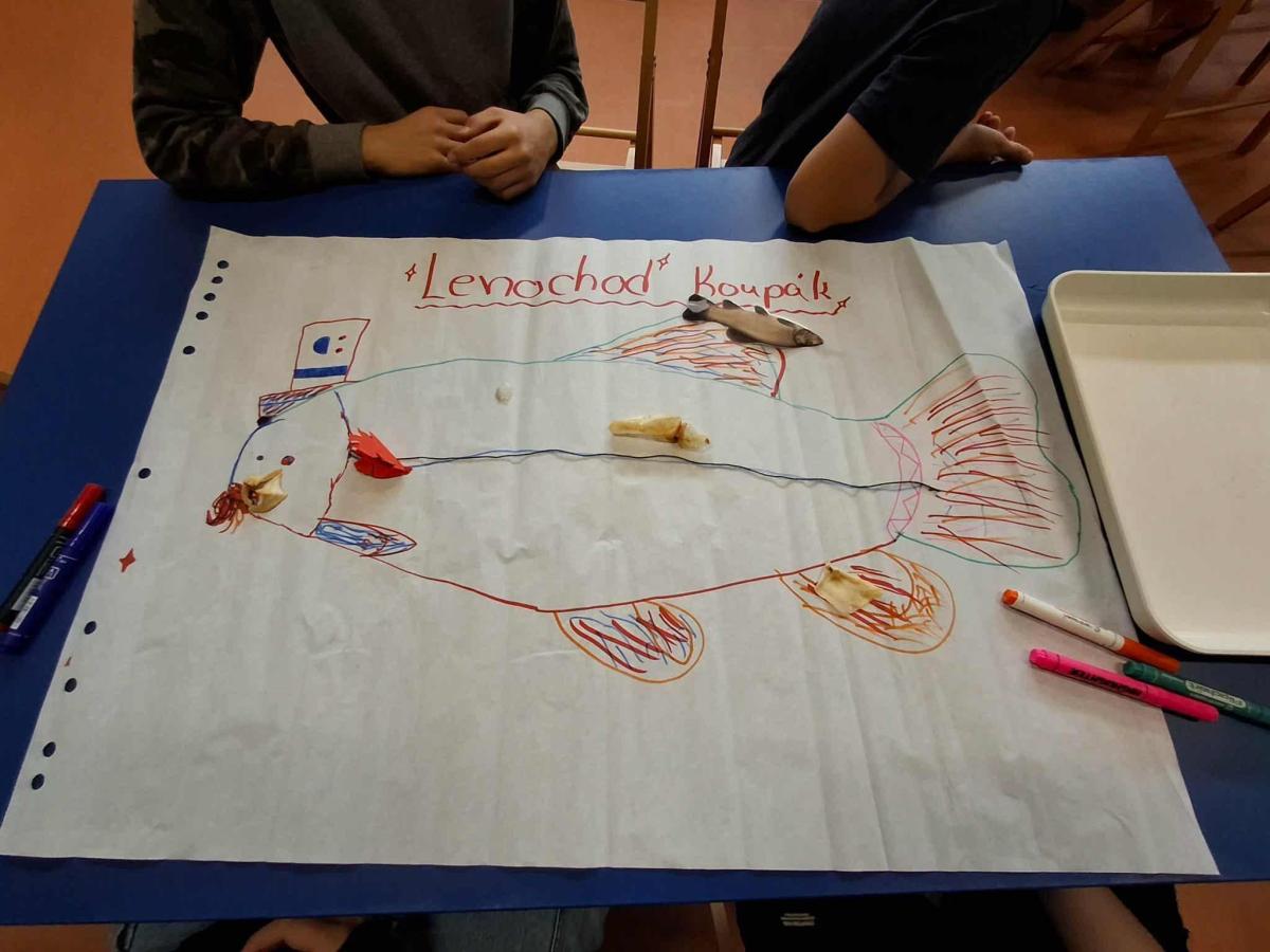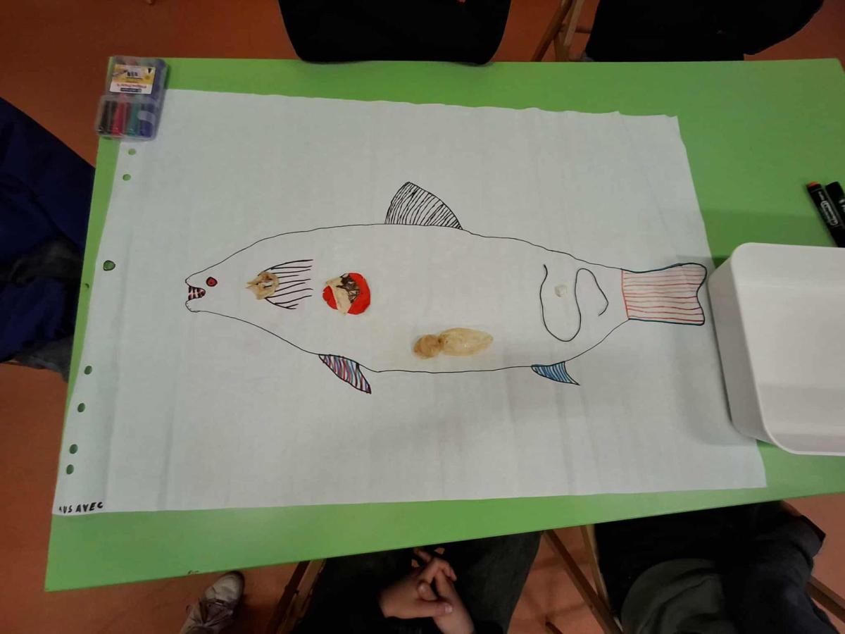 V rámci workshopu si žáci sestavili vlastní (a často velmi vtipně pojmenované) rybky, do nichž vkládali skutečné orgány – vypreparované pro účely výuky. Díky tomu zjistili, jak vlastně ryba funguje zevnitř.
