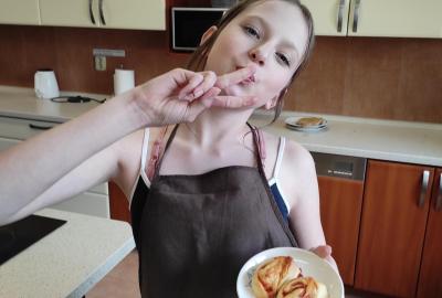 "Co si dneska upečeme? Slané šneky, sladké sušenky,anebo lehký ovocný salát?" "Všechno."
