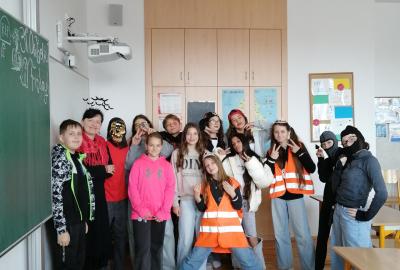 V pátek 31.10. se někteří připojili k výzvě žákovské rady a přišli v halloweenském..... :-)