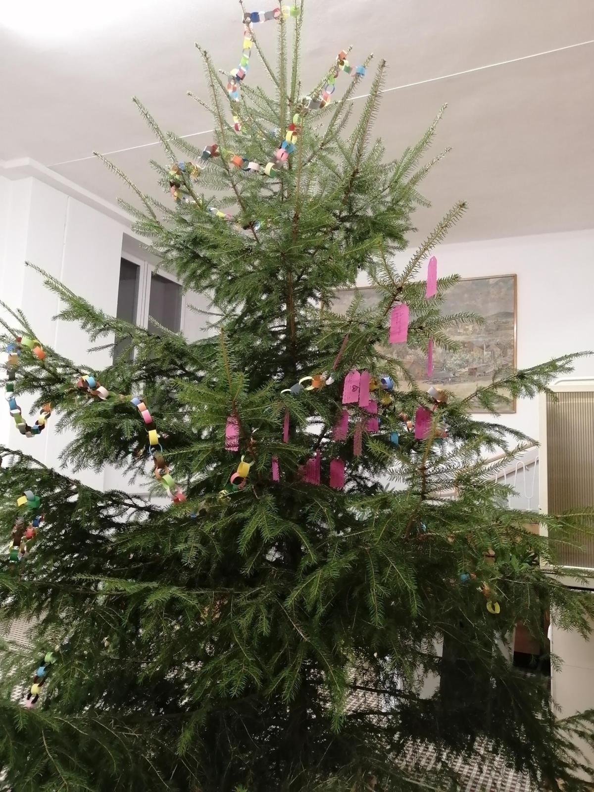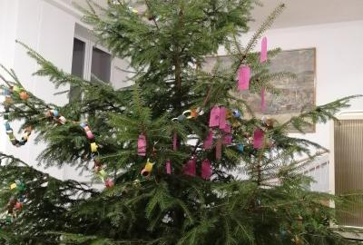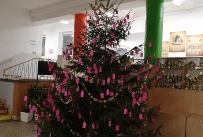 Kdo chtěl, mohl se zamyslet nad tím, za co je v životě vděčný a zapsat to na barevnou kartičku. Ty pak zavěšené na strom ve vestibulu vytvořily Strom vděčnosti. Přidali jsme se a děkujeme za tento krásný nápad :-)