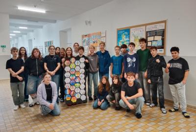 Propojujeme znalosti z více předmětů do velkého výtvarného díla, tentokrát do "včelí plástve".