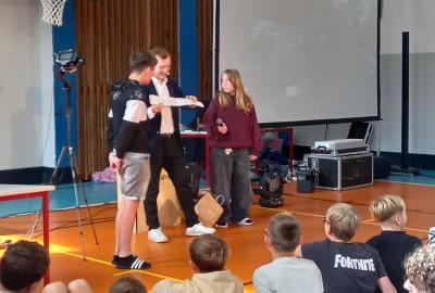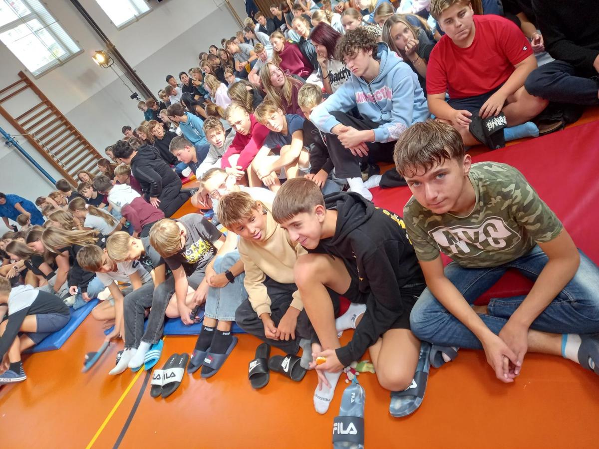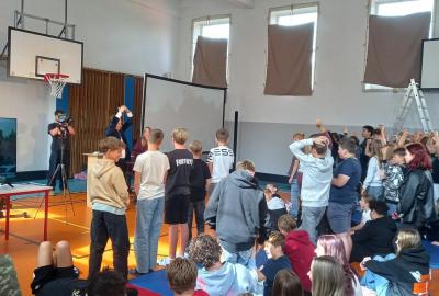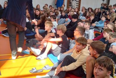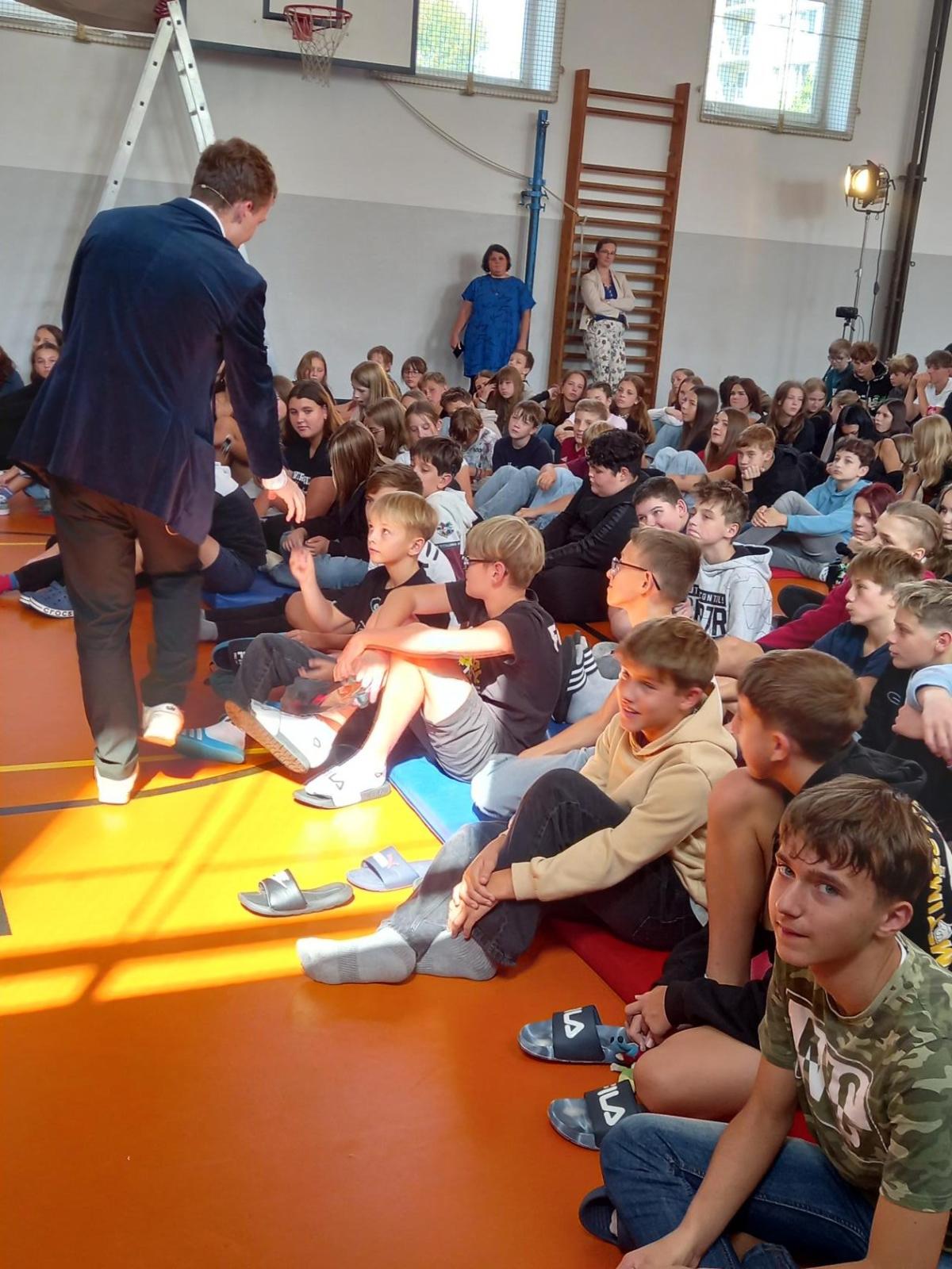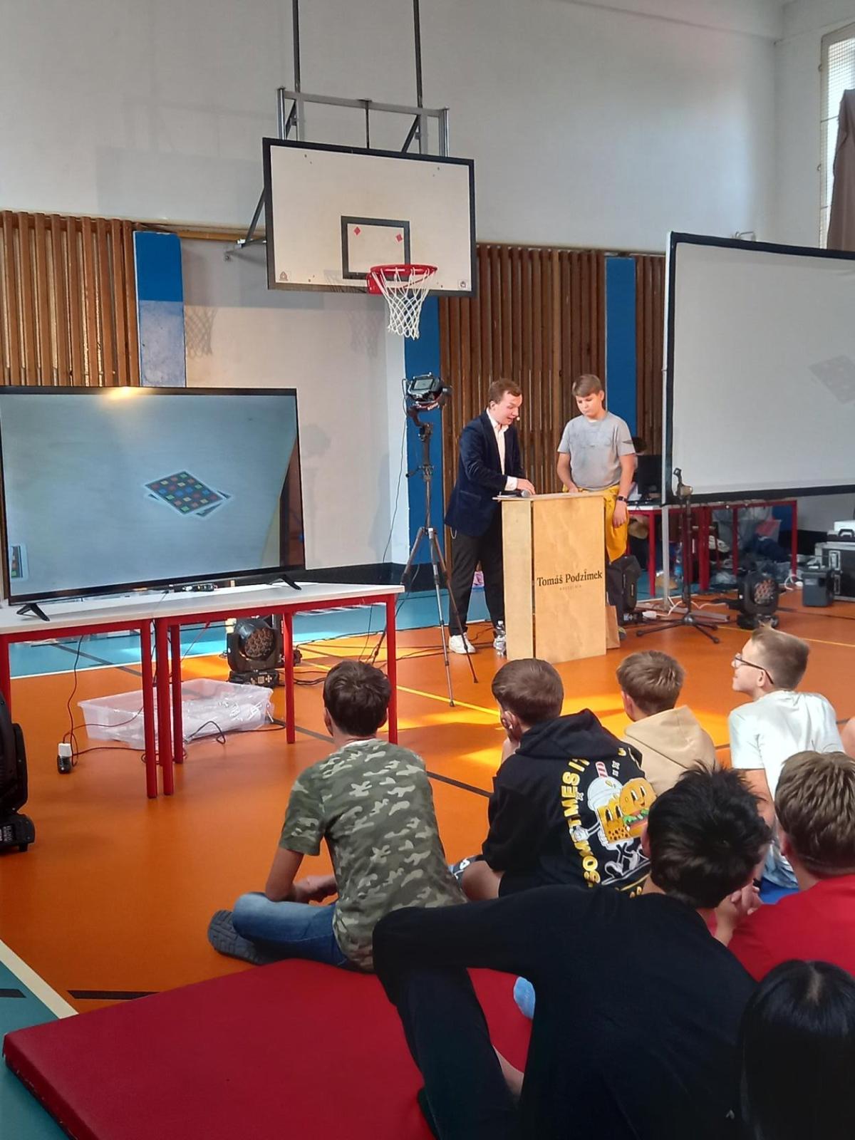 V úterý 16. 9. nás navštívil účastník show ČeskoSlovensko má talent kouzelník Tomáš Podzimek a v tělocvičně školy predvedl úžasné kouzelnické vystoupení. Děvčata chtěla nechat zmizet naše chlapce, ale naštěstí jim Tomáš nevyhověl.