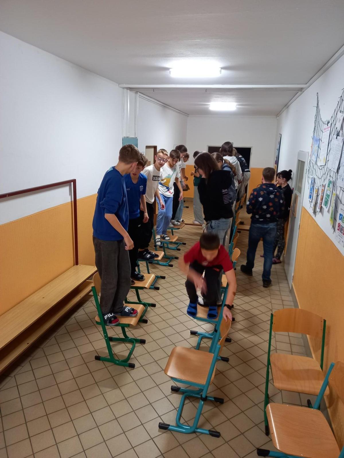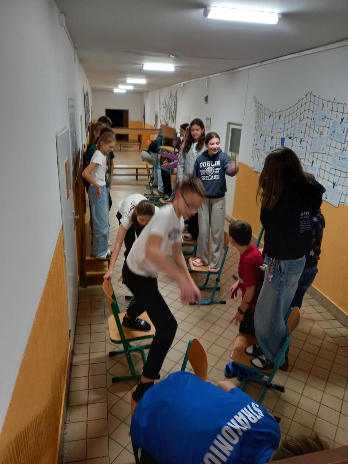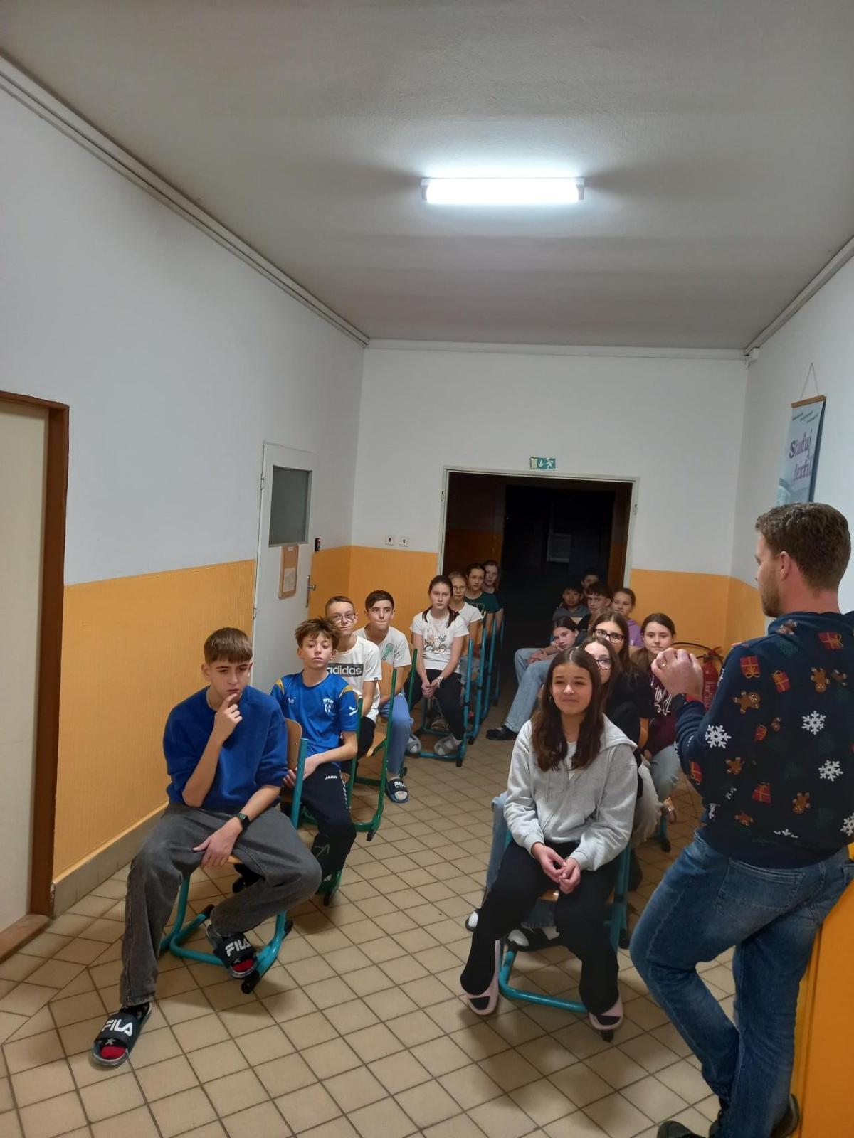 Ve čtvrtek 18. 12. jsme se šešli ve škole v 17 hodin vybaveni spacáky a všemi nezbytnostmi nutnými k přespání ve škole. Společnost nám dělala 7.C. Společně i odděleně jsme si zahráli několik her a vyzvedli si večeře dle našeho výběru. Největší úspěch měla schovka za tmy. Někteří přespali více a jiní méně, ale celou akci jsme si fajnově užili.