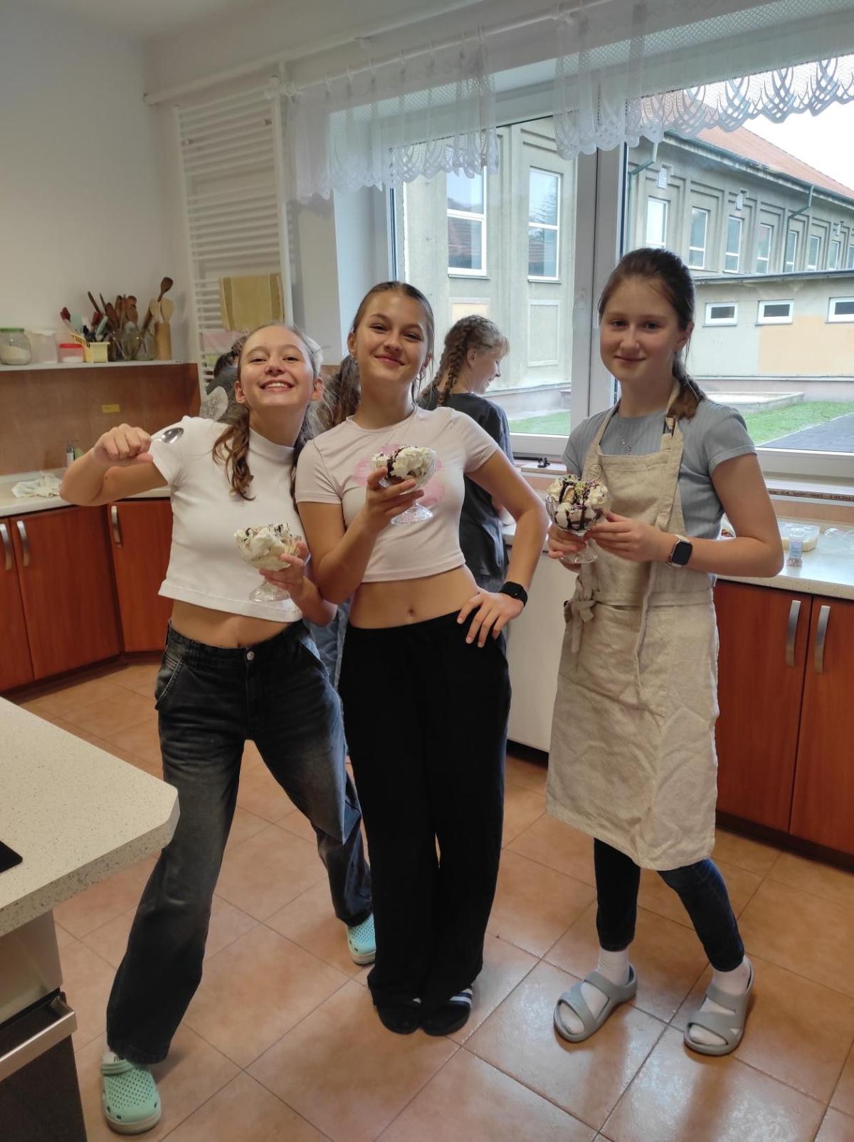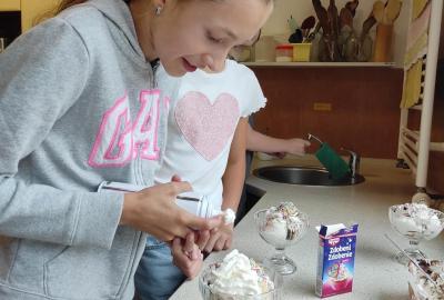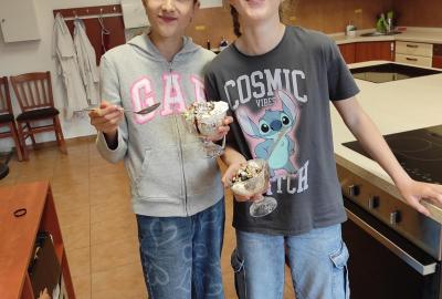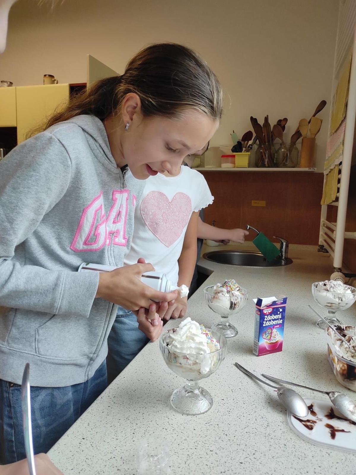 Naše třída ráda tvoří. Už vznikly krásné zmrzlinové poháry, chutné pomazánky i lahodné lívance a palačinky.