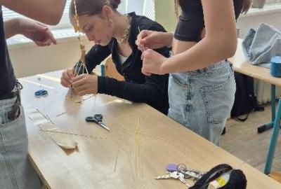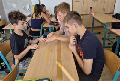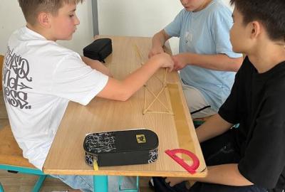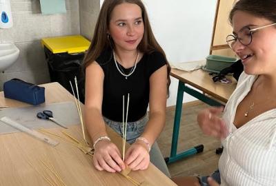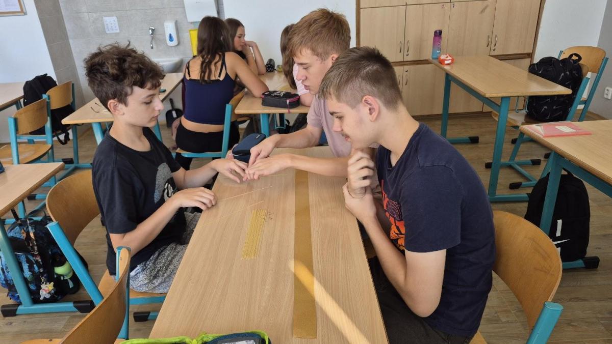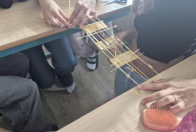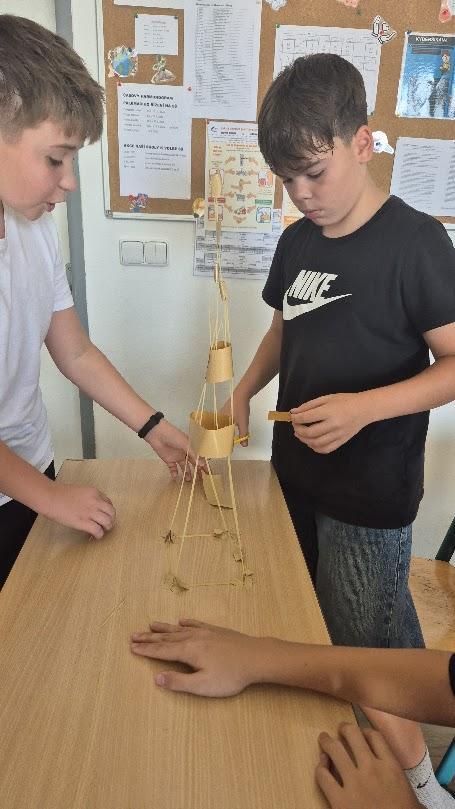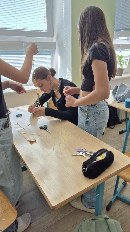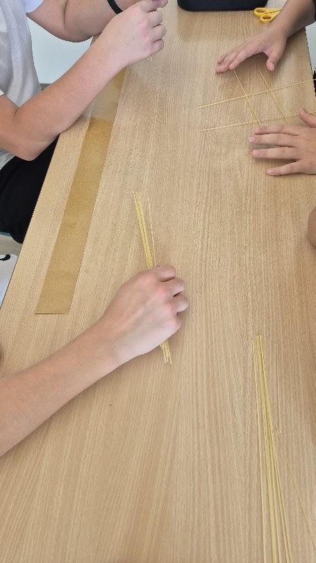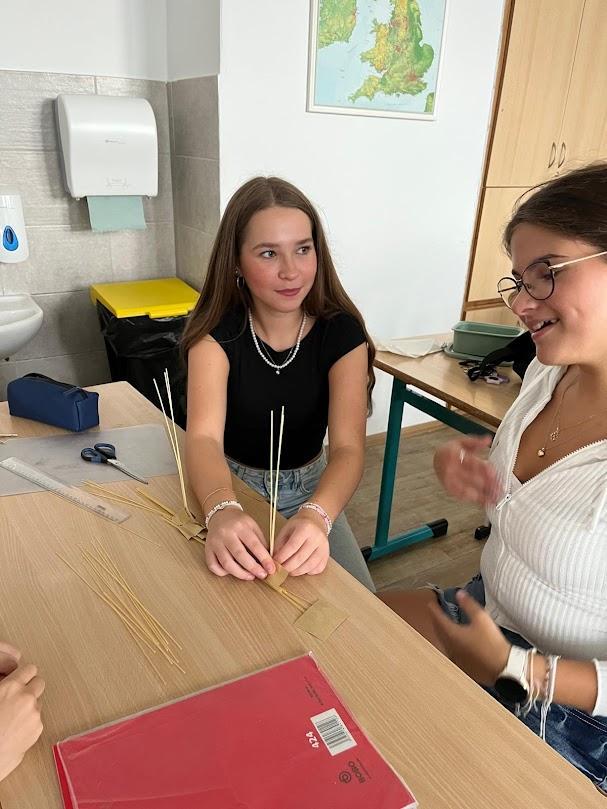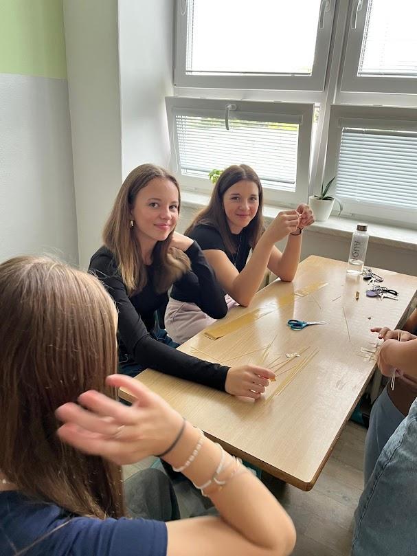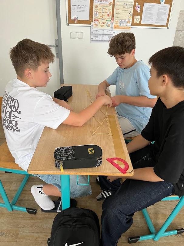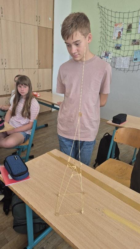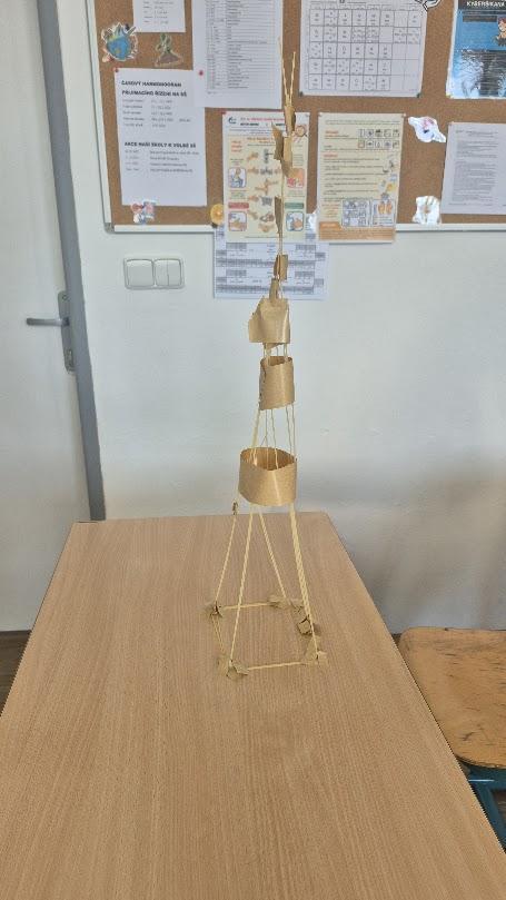 První výzvou bylo postavit ze špaget a kousku izolepy co nejvyšší stavbu. Každý tým zvolil trochu jinou strategii, nápady byly opravdu originální. Nakonec zvítězila stavba, která dosáhla největší výšky a zároveň odolala zkoušce stability. Druhá hodina patřila stavbě mostů. Materiál byl stejný, ale tentokrát rozhodovalo, kolik toho konstrukce unese.
