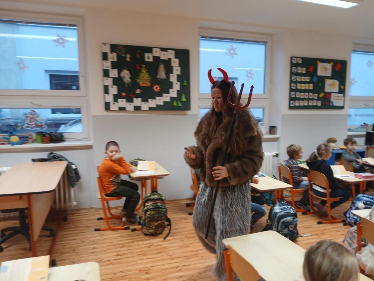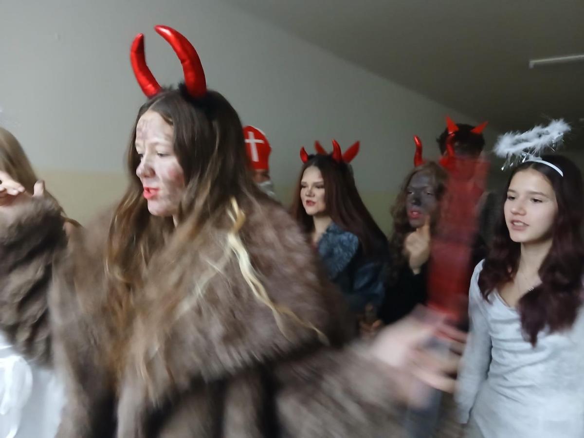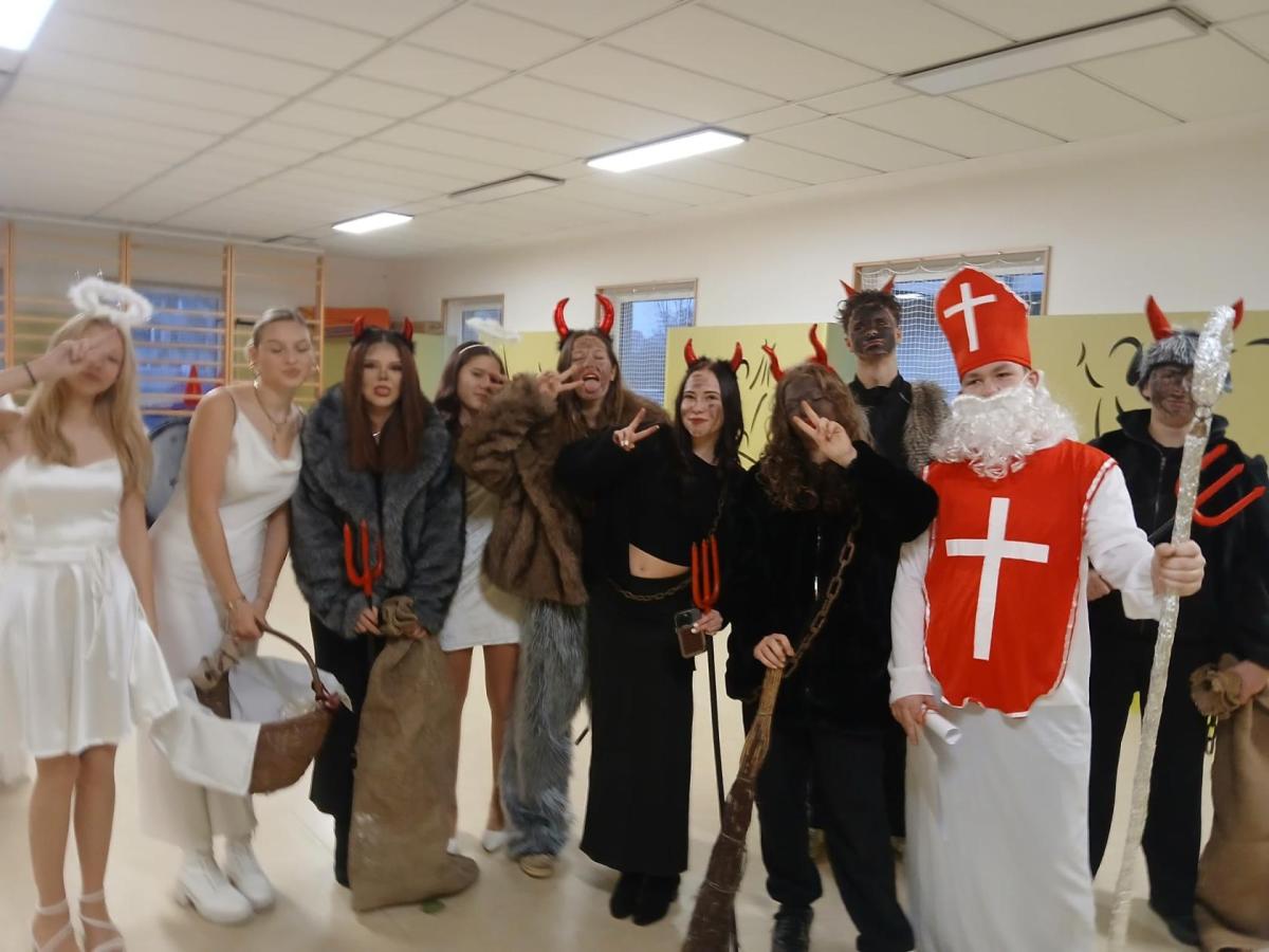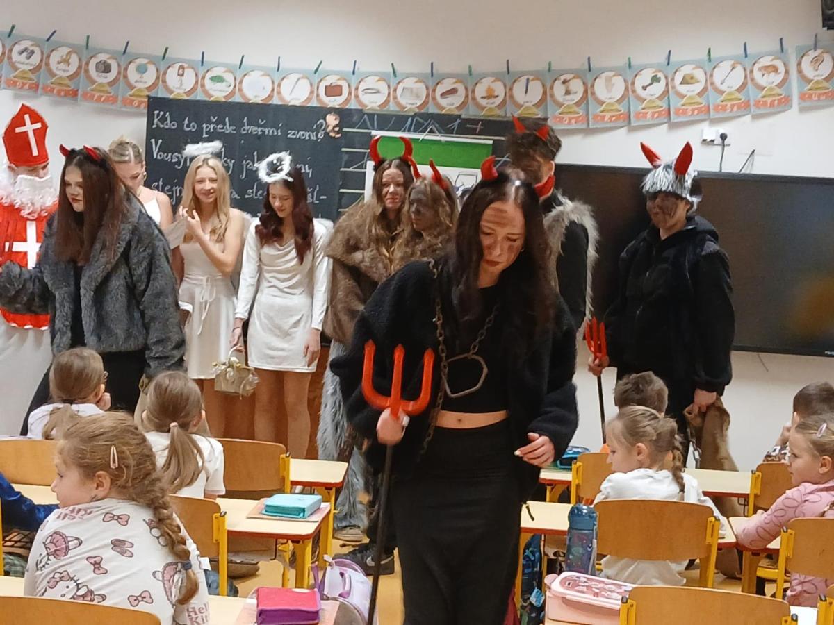 Jako každý rok se někteří deváťáci zapojili do mikulášské nadílky a potěšili mladší. Každý může posoudit, jak moc jim to slušelo...