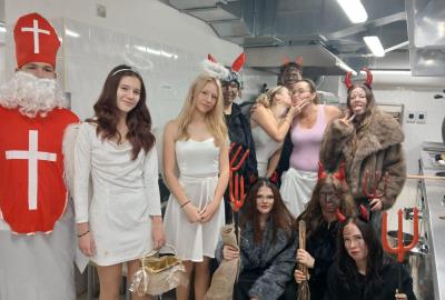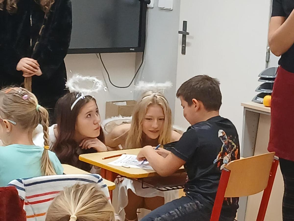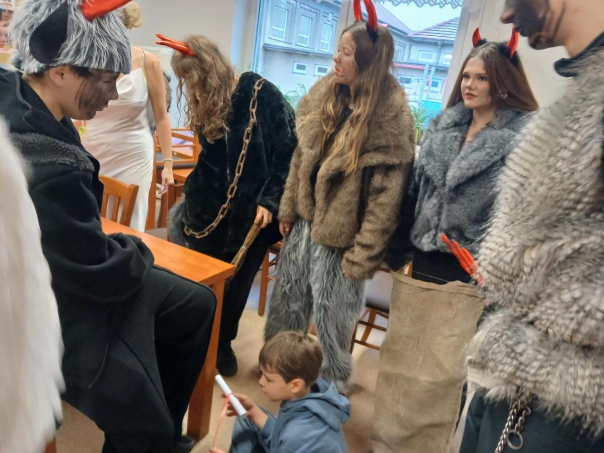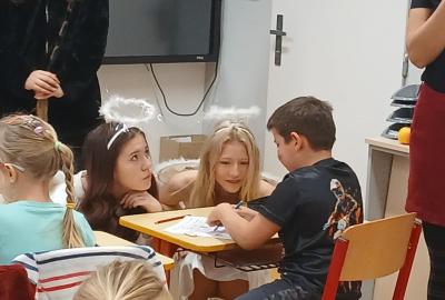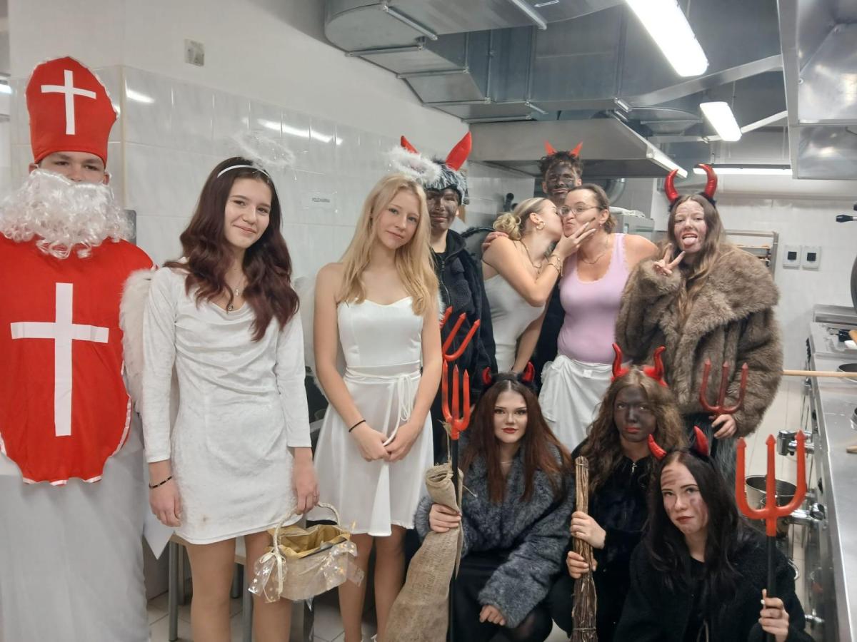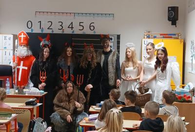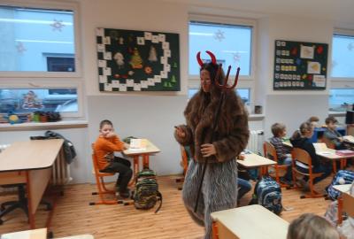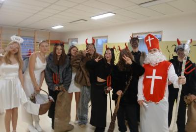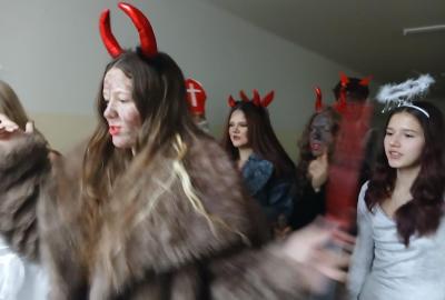Jako každý rok se někteří deváťáci zapojili do mikulášské nadílky a potěšili mladší. Každý může posoudit, jak moc jim to slušelo...