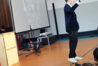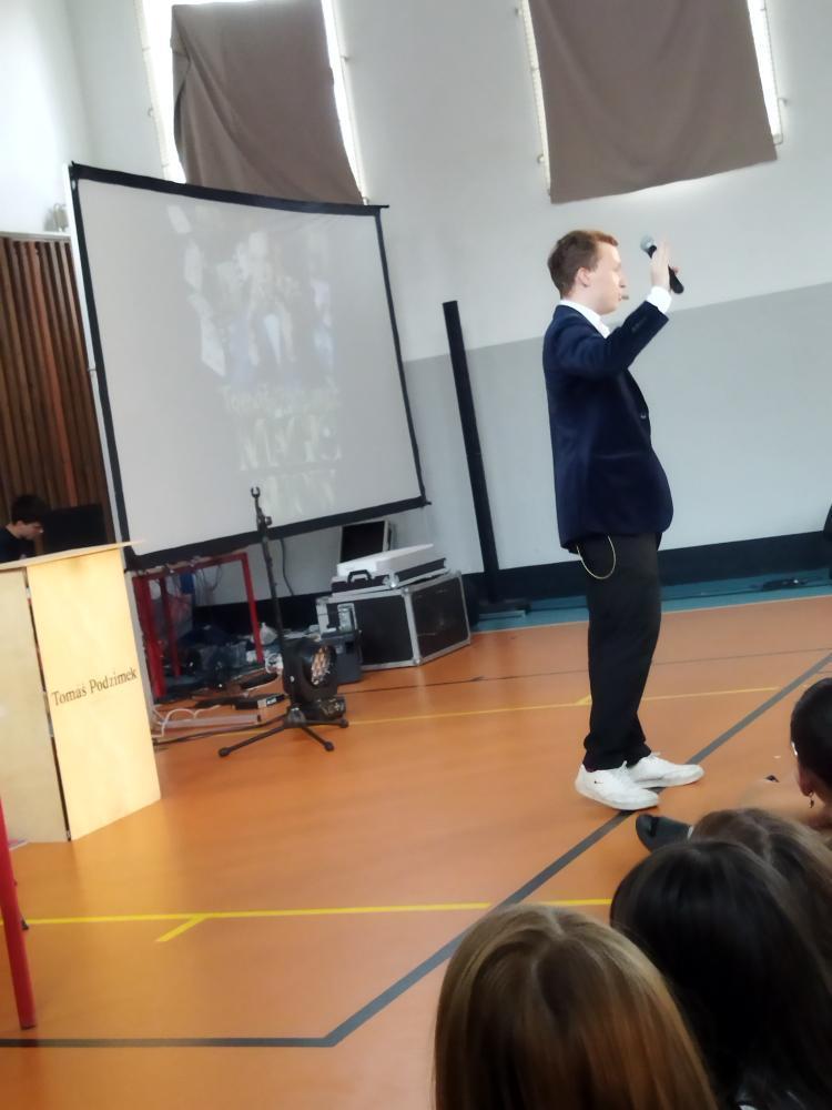 Do školy za námi zavítal mladý kouzelník Tomáš Podzimek. Děti měly možnost se i samy zapojit. Kouzla byla spojena s vyprávěním o různých státech.