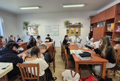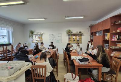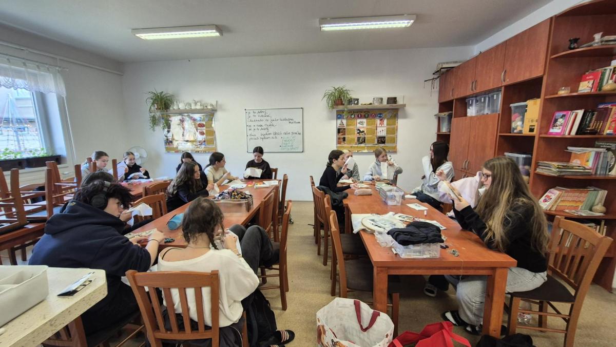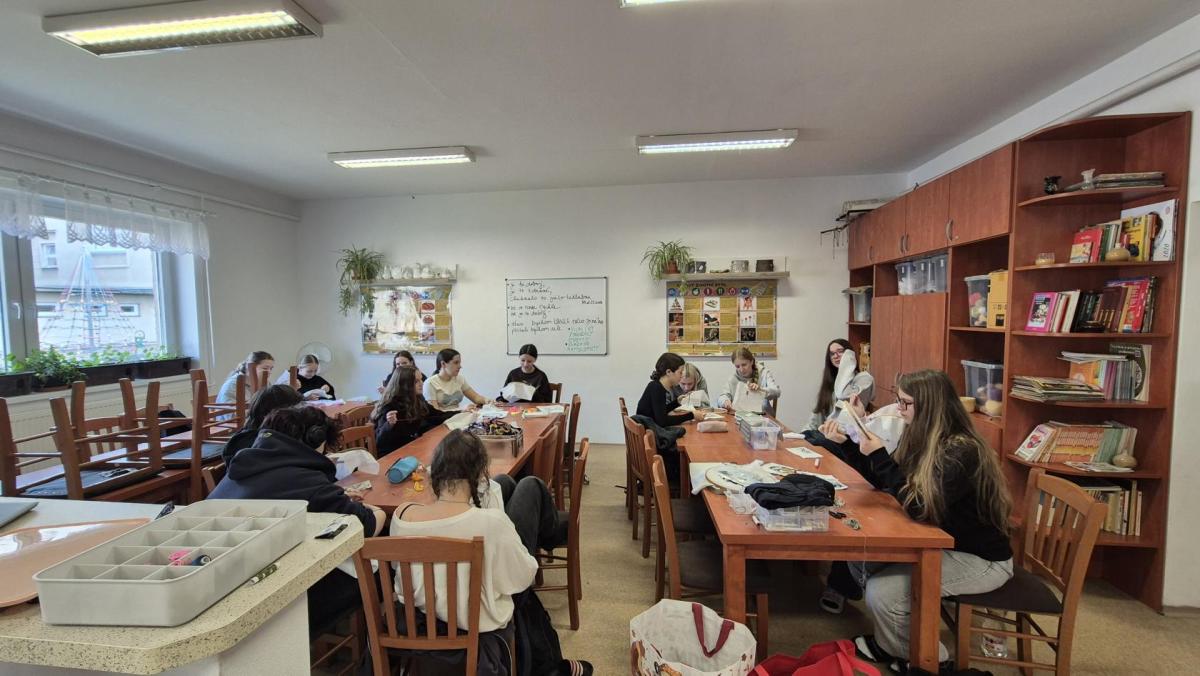 V devátých ročnících se děvčata učí různé ruční práce. Na fotografiích zrovna vyšívají křížkovým stehem podle předloh, které si děvčata sama vybrala