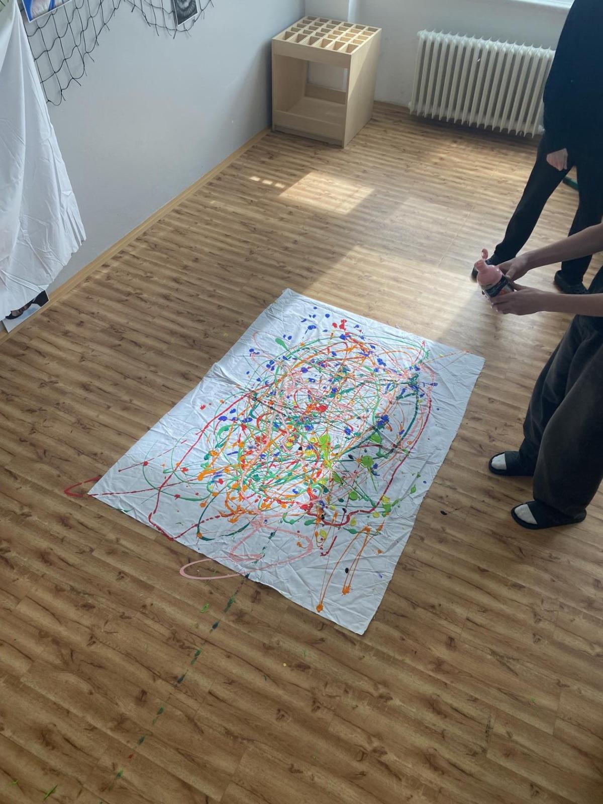 Pro způsob Pollockovy malby se používal termín action painting neboli akční malba. Tady jsou výsledky naší práce. :)
