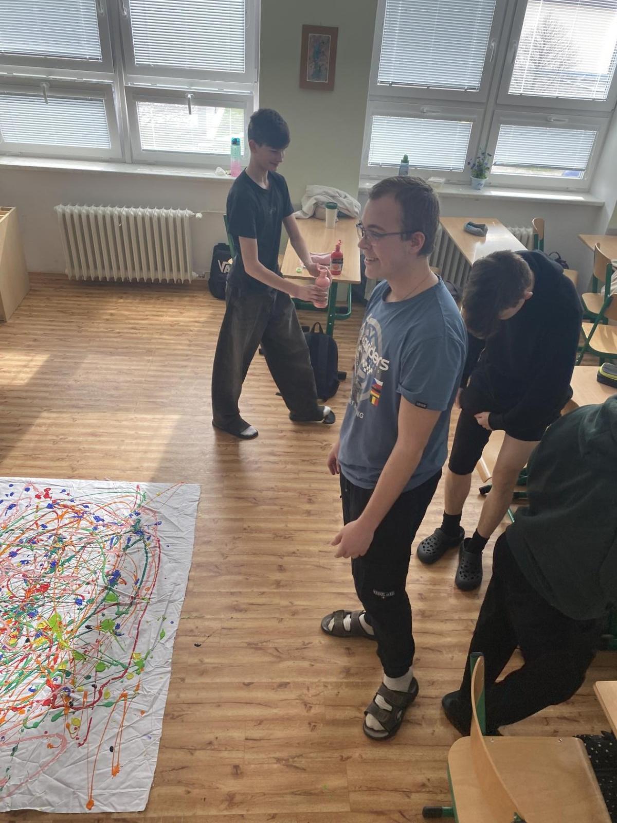 V 9. ročnících jsme si o výtvarné výchově zkoušeli abstrakci inspirovanou tvorbou významného amerického malíře Jacksona Pollocka.